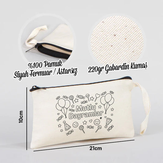 Boyanabilir 22x12x5 cm Körüklü Kanvas Kalemlik - Bayram Hediyesi
