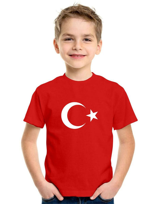 Ay Yıldız Baskılı Kırmızı Promosyon Çocuk Tişört - 1000 Adet - Tek Renk Baskı