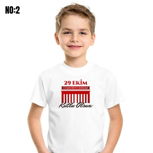 29 Ekim Ay Yıldız Baskılı Promosyon Çocuk Tişört - Beyaz