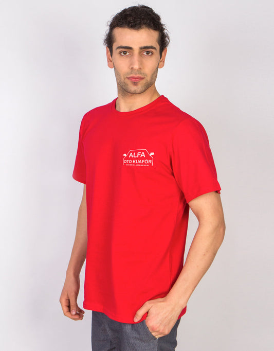 Yuvarlak Yaka Tişört Kırmızı - Oto Yıkama
