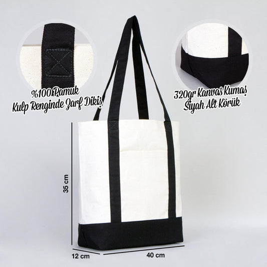 Trend Kanvas Çanta 40x35x12cm - Siyah Renkli Kulp (Özelleştirilebilir)