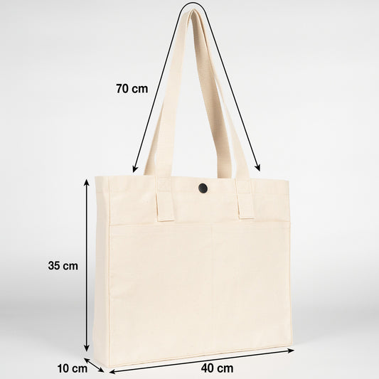 LUX Kanvas Çanta Ham Kulp - Ön Cepli, Çıtçıtlı 40x35x10cm