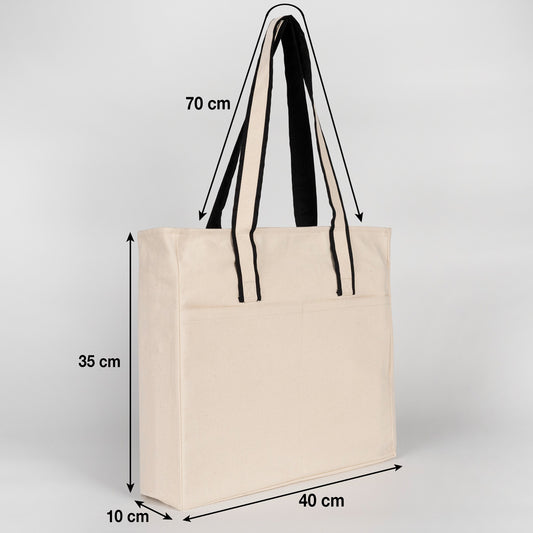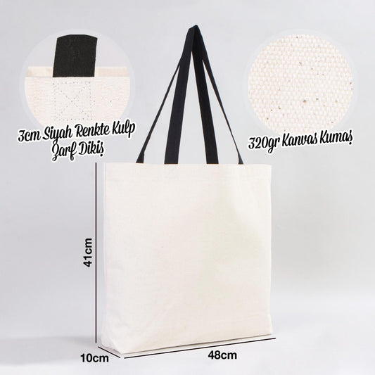 Trend Kanvas Çanta 40x35x12cm - Siyah Renkli Kulp (Özelleştirilebilir)