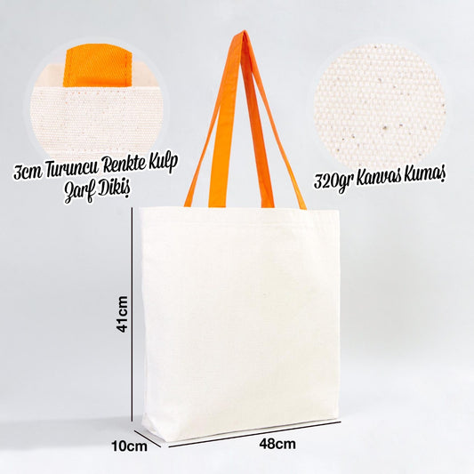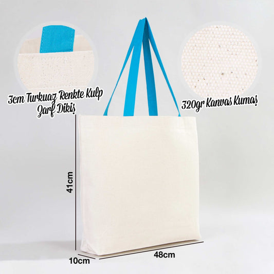Trend Kanvas Çanta 40x35x12cm - Turkuaz Renkli Kulp (Özelleştirilebilir)
