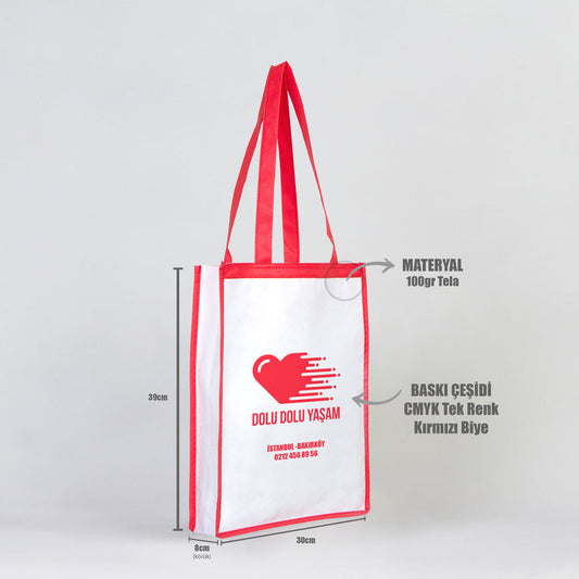 Tela Çanta - Kırmızı Biyeli Promosyon Çanta