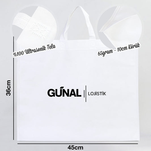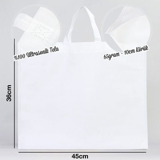 Ultrasonik Tela Kese - Beyaz - 42x32 cm - Ayakkabı Ve Çamaşır Torbası - 500 Adet, Tek Renk Logo Baskılı