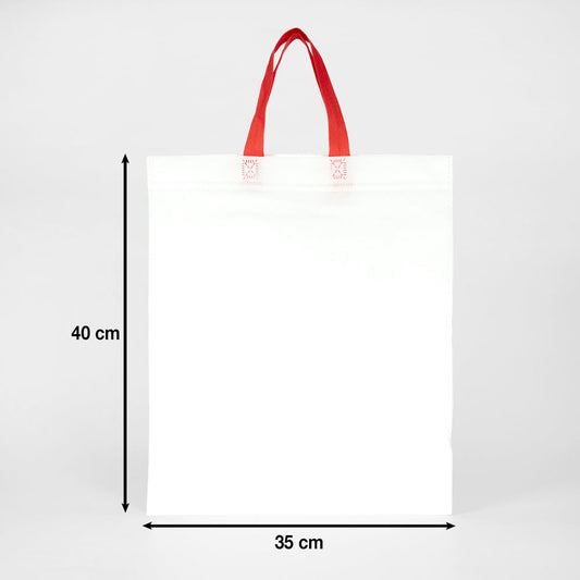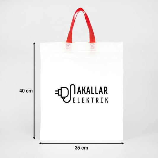 Ultrasonik Tela Çanta - Kırmızı Kulplu - 45x36x10cm - 1000 Adet Tek Renk Baskı (Özelleştirilebilir)