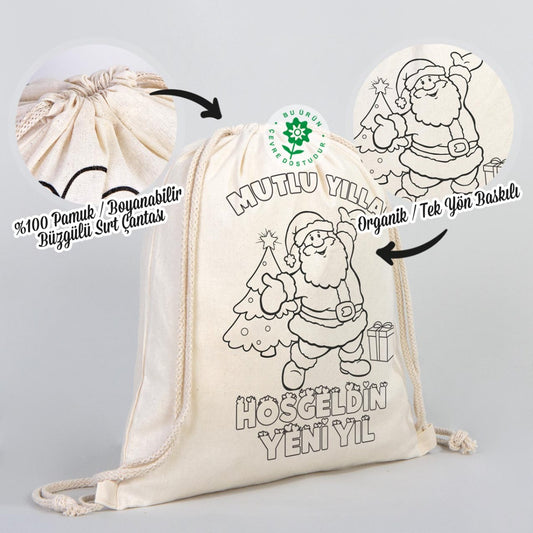 Yılbaşı Boyanabilir Büzgülü Sırt Çantası (Özelleştirilebilir)