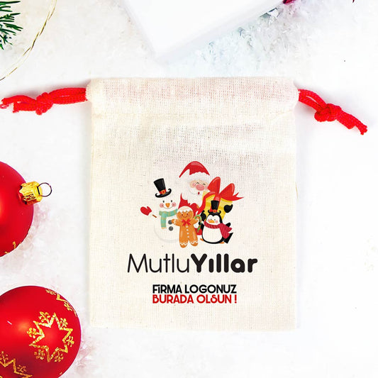 Yeni Yıl Hediyelikleri Bez Kese - Renkli İp (Özelleştirilebilir)