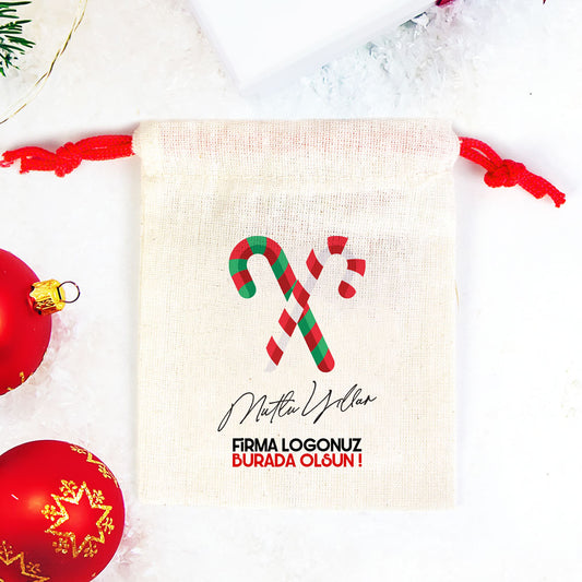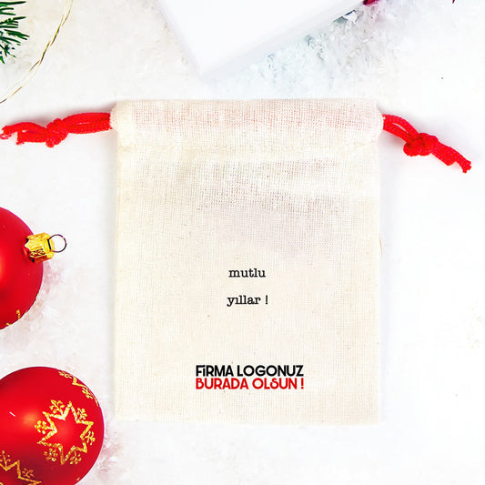 Yılbaşı Bez Kese - Renkli İp (Özelleştirilebilir)