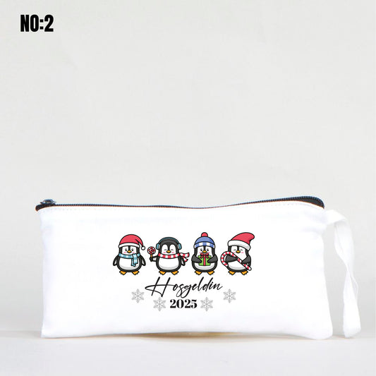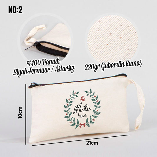Yılbaşı Baskılı Bez Kalemlik - Beyaz 21x10 cm (Özelleştirilebilir)