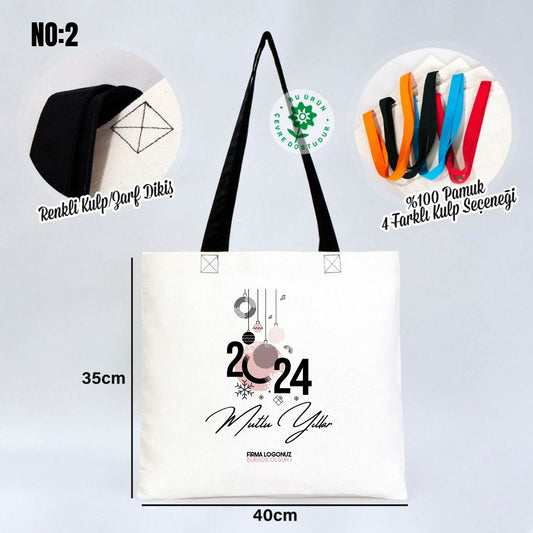 Yılbaşı Temalı Renkli Kulp Gabardin Çanta 40x35cm (Özelleştirilebilir)