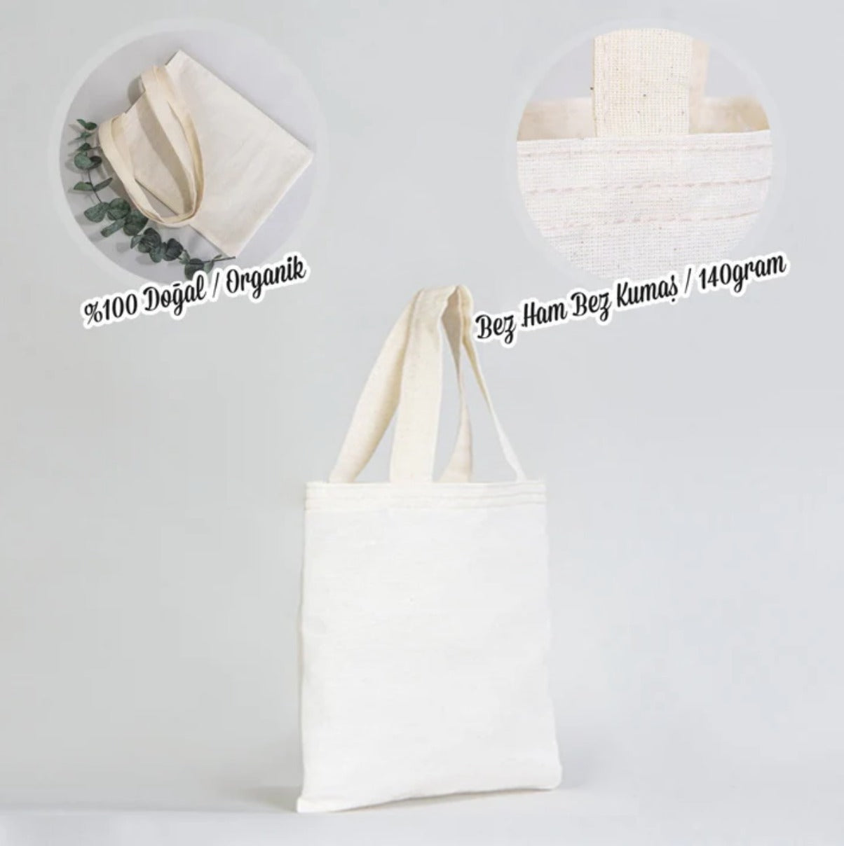 • Küçük Boy Ham Bez Çanta Boyutları 23x23 cm (+- 1 cm değişiklik gösterebilir)