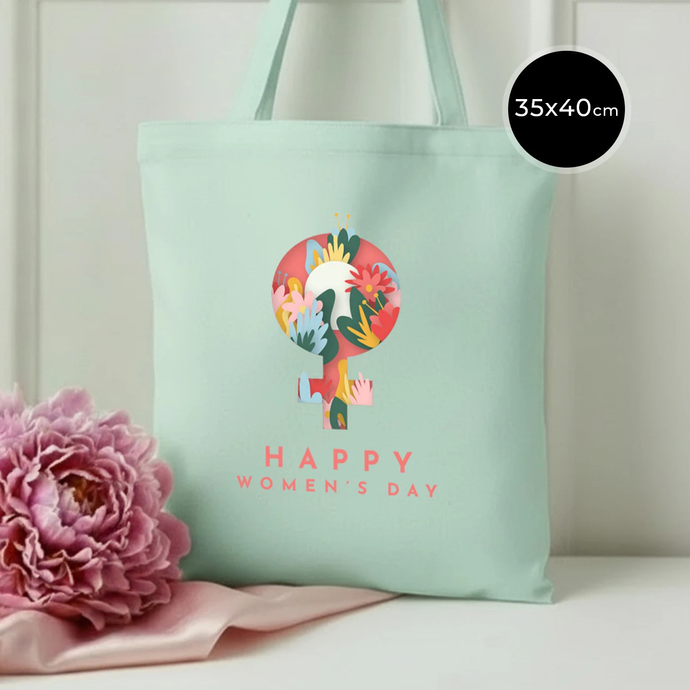 35x40 cm Mint Yeşili Gabardin Bez Çanta - Kadınlar Günü