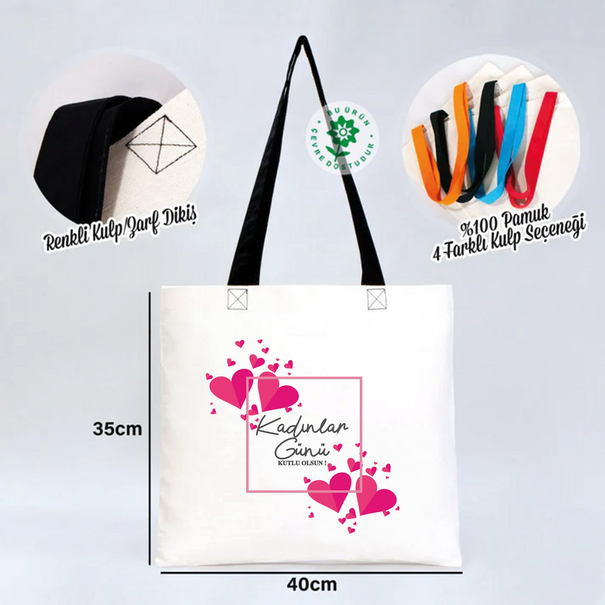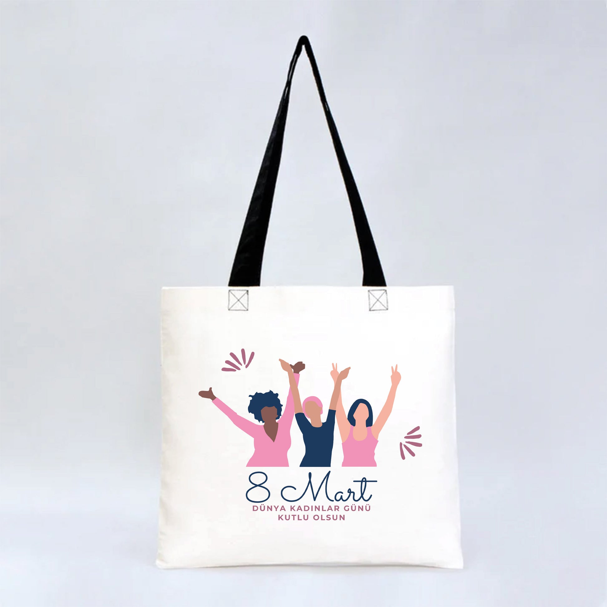 40x35 cm Gabardin Siyah Kulp Çanta - Kadınlar Günü