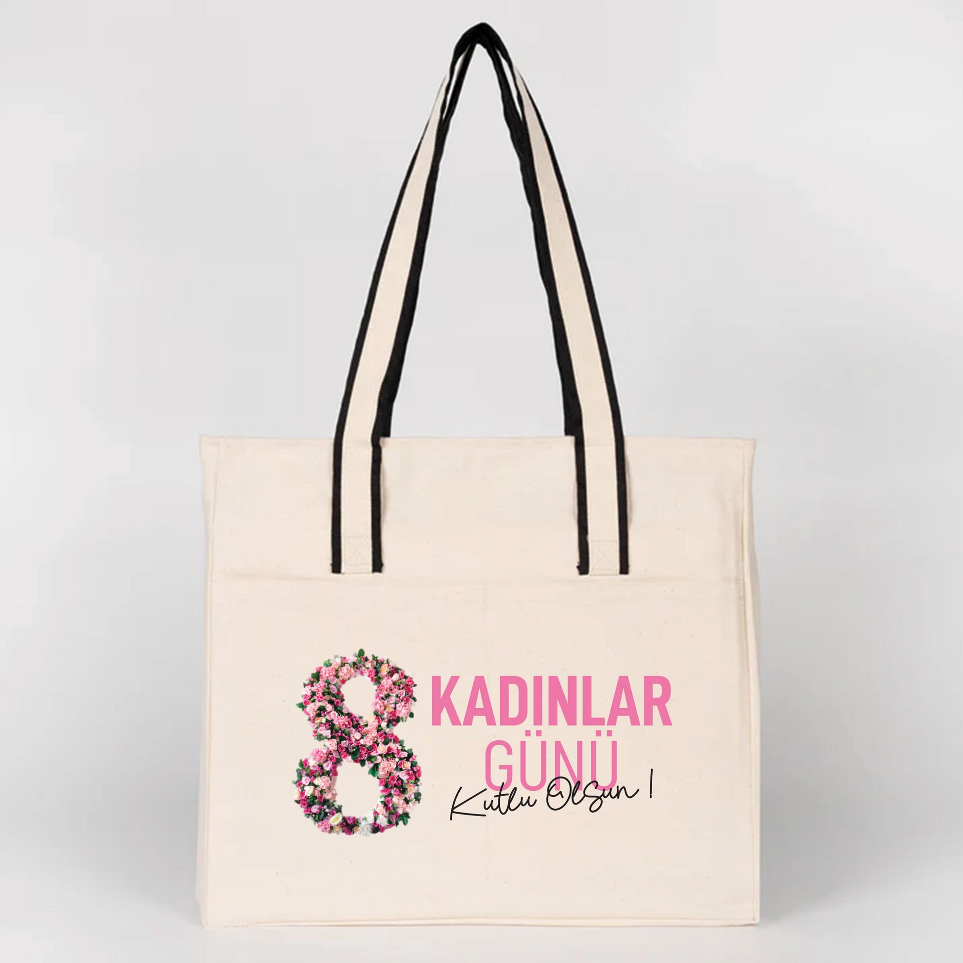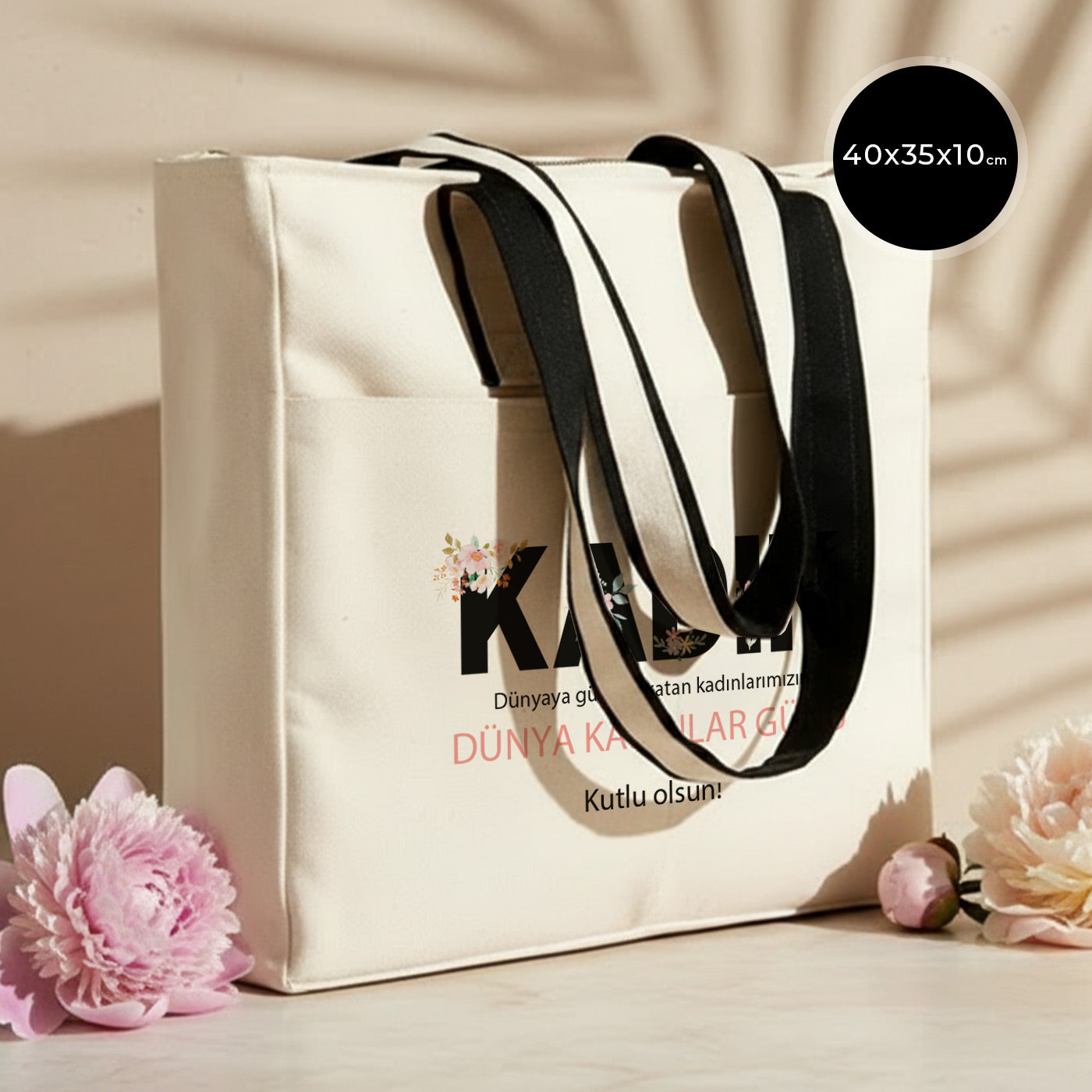 40x35x10 cm LUX Kanvas Çanta FERMUARLI, ÖN CEPLİ - Kadınlar Günü Hediyesi