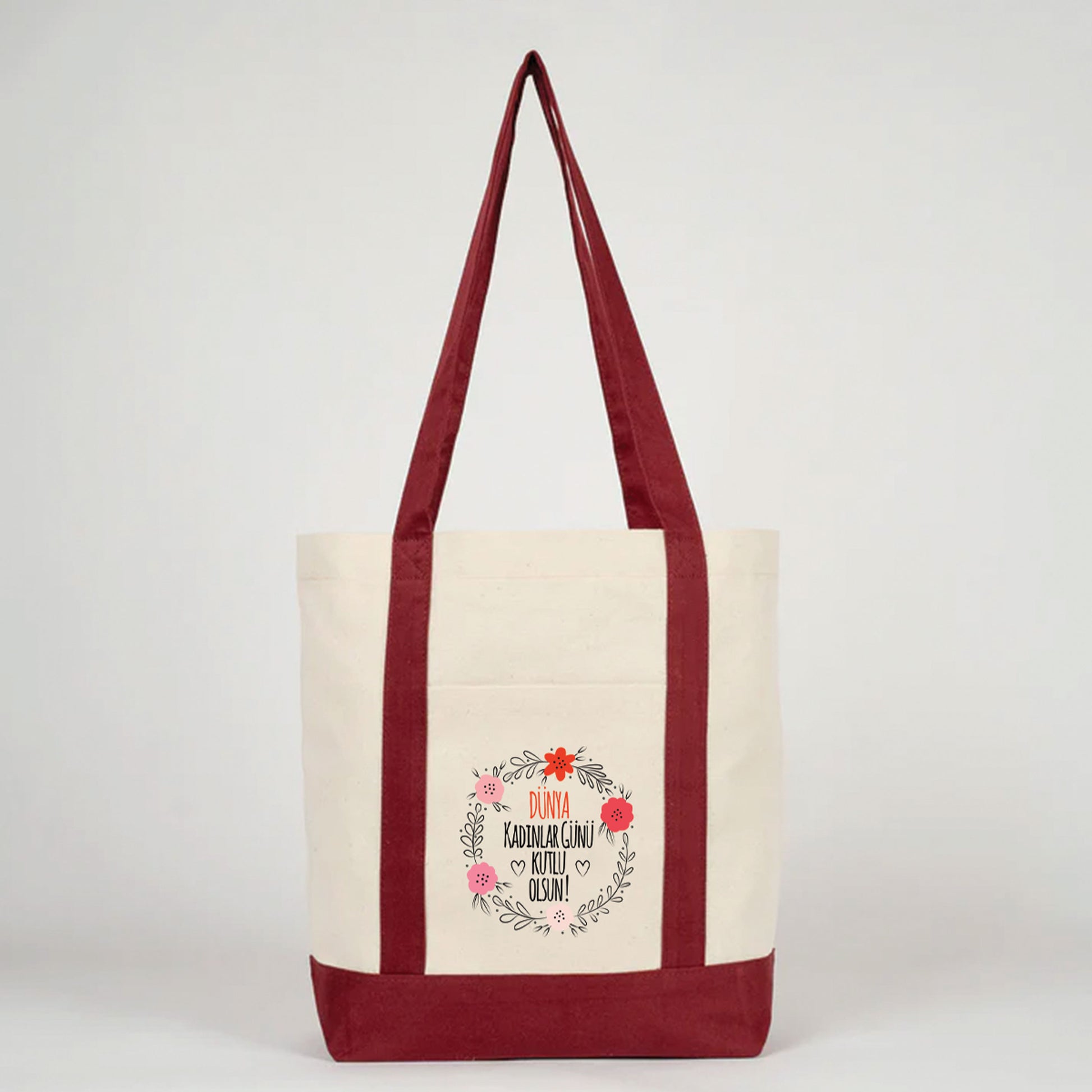 40x35x12 cm Trend Kanvas Çanta Bordo Kulp - Kadınlar Günü Hediyesi
