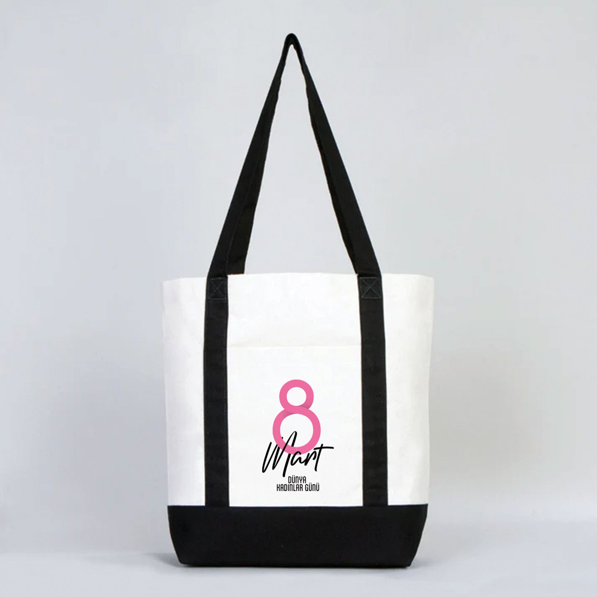 40x35x12 cm Trend Kanvas Çanta Siyah Kulp - Kadınlar Günü Hediyesi