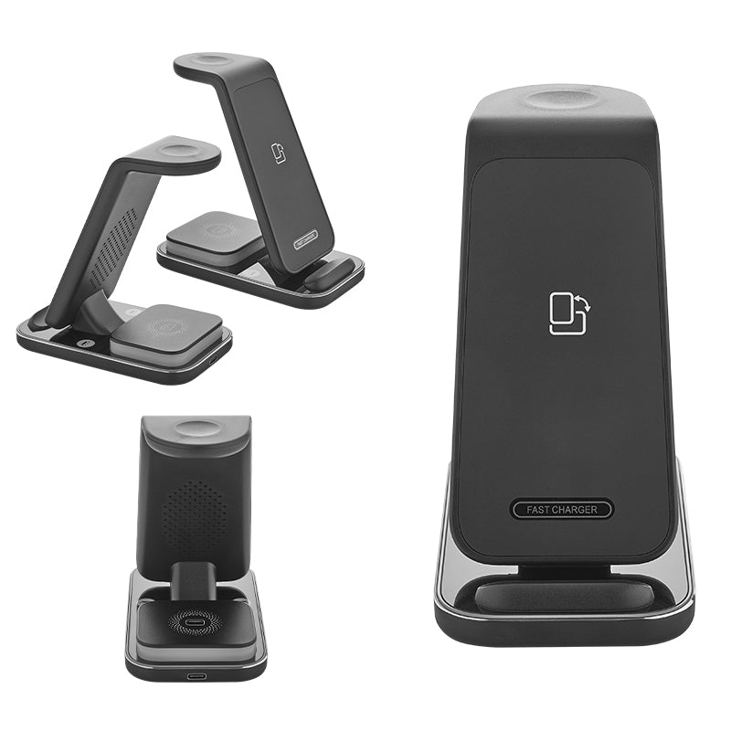 4210 Siyah 3'ü 1 Arada Kablosuz Şarj Cihazı