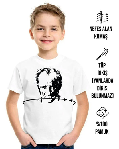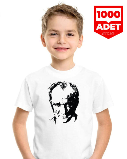 Atatürk Baskılı Promosyon Çocuk Tişört - Beyaz- 1000 Adet - Tek Renk Baskı