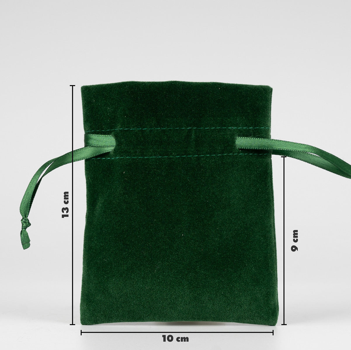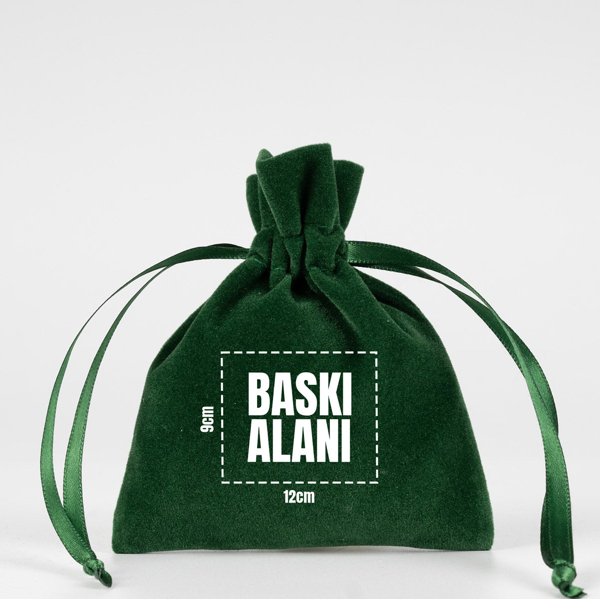 Kadife Gül Kese 10x13 cm - Yeşil (Özelleştirilebilir)