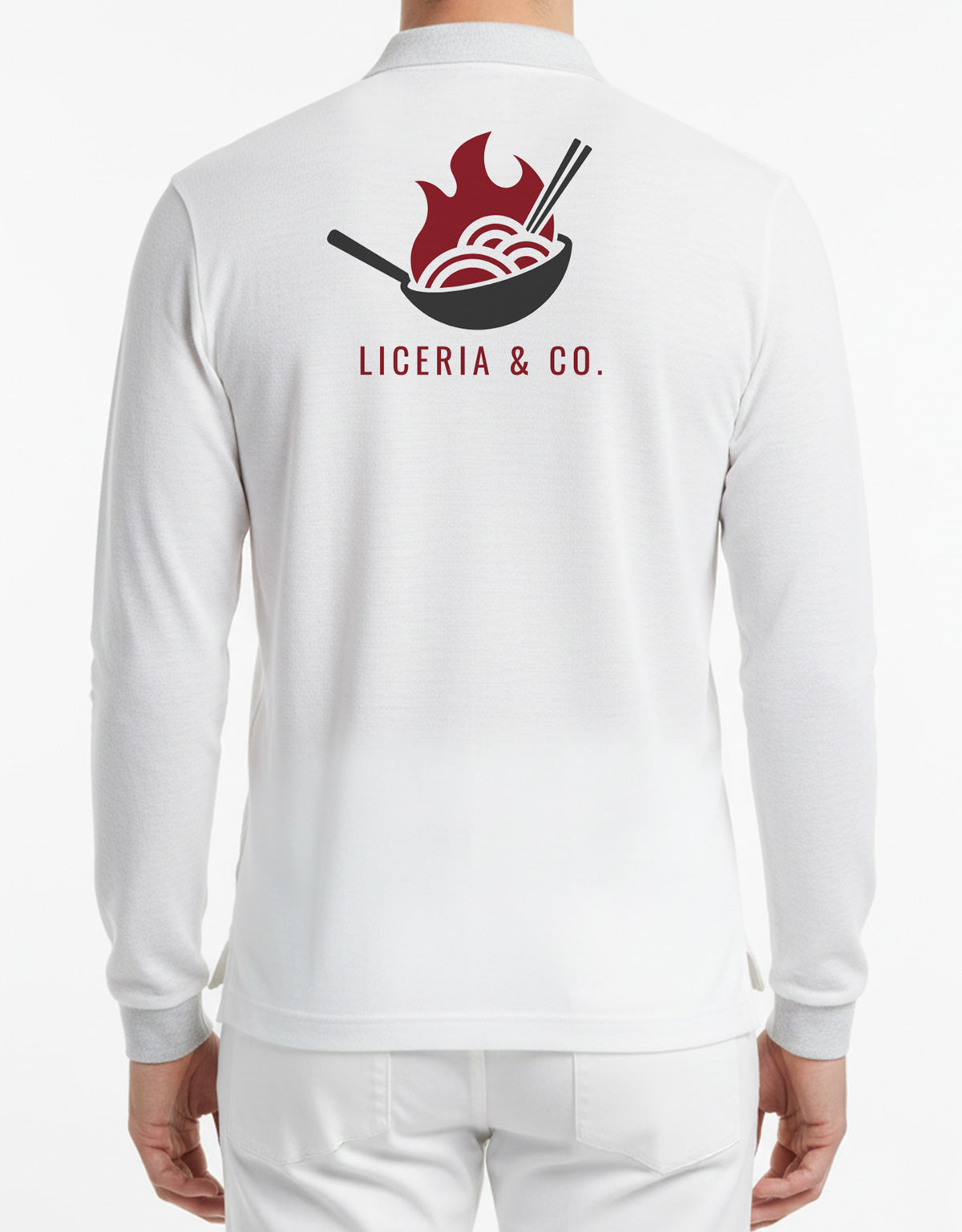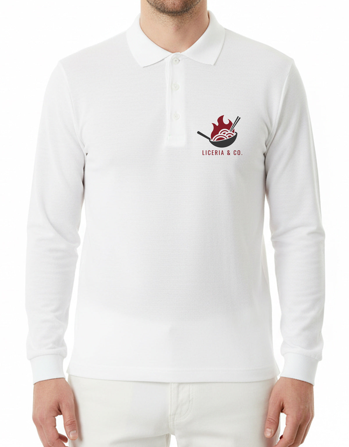 Baskılı Polo Yaka Uzun Kol Beyaz Tişört