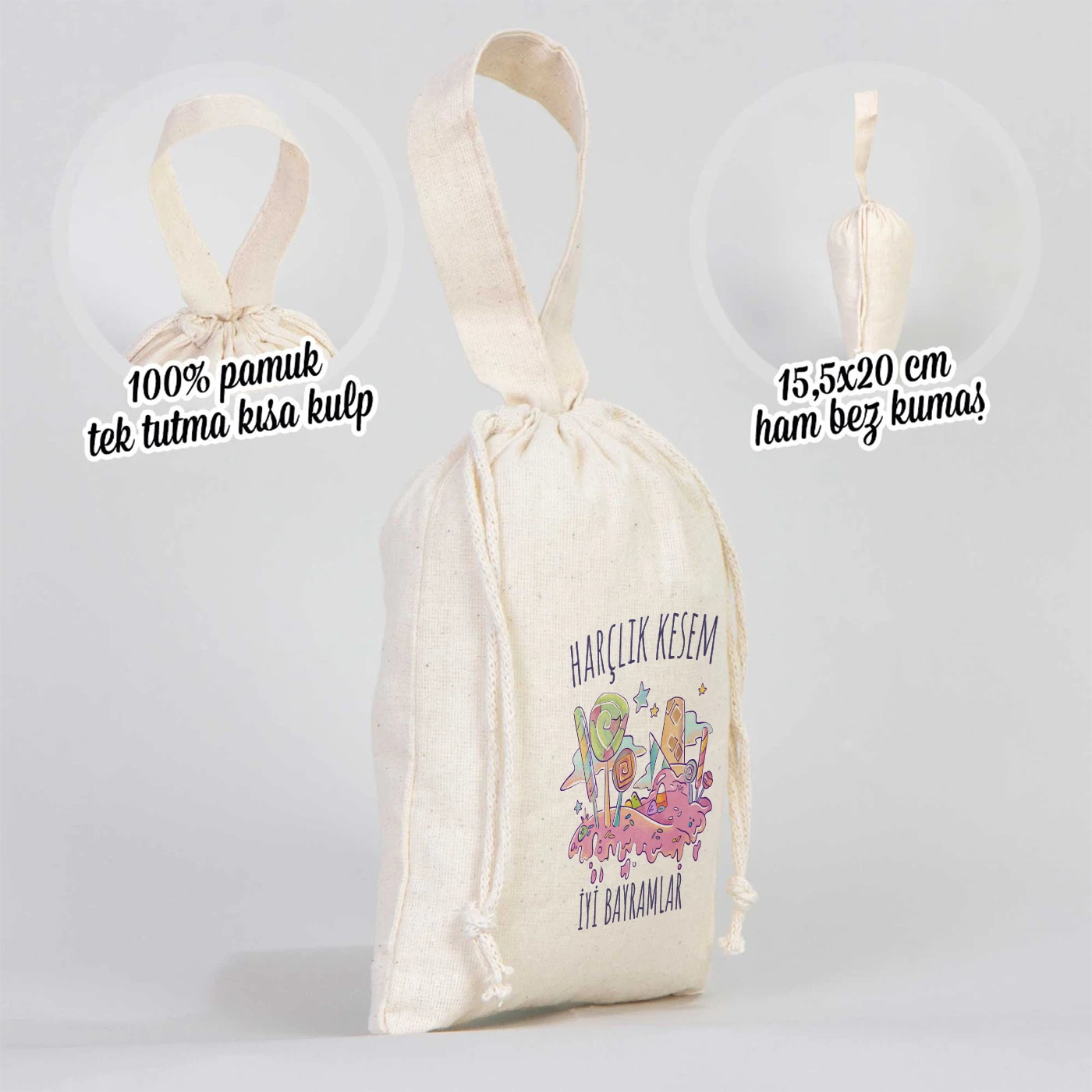 15x20 Bez Kese Tek Tutma Kısa Kulp - Bayram Harçlık Kesesi