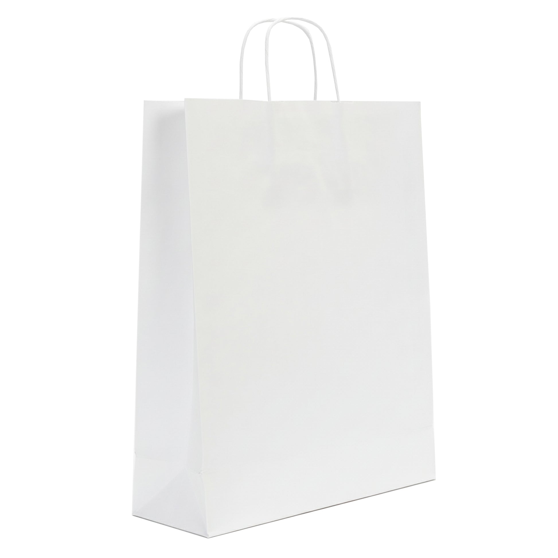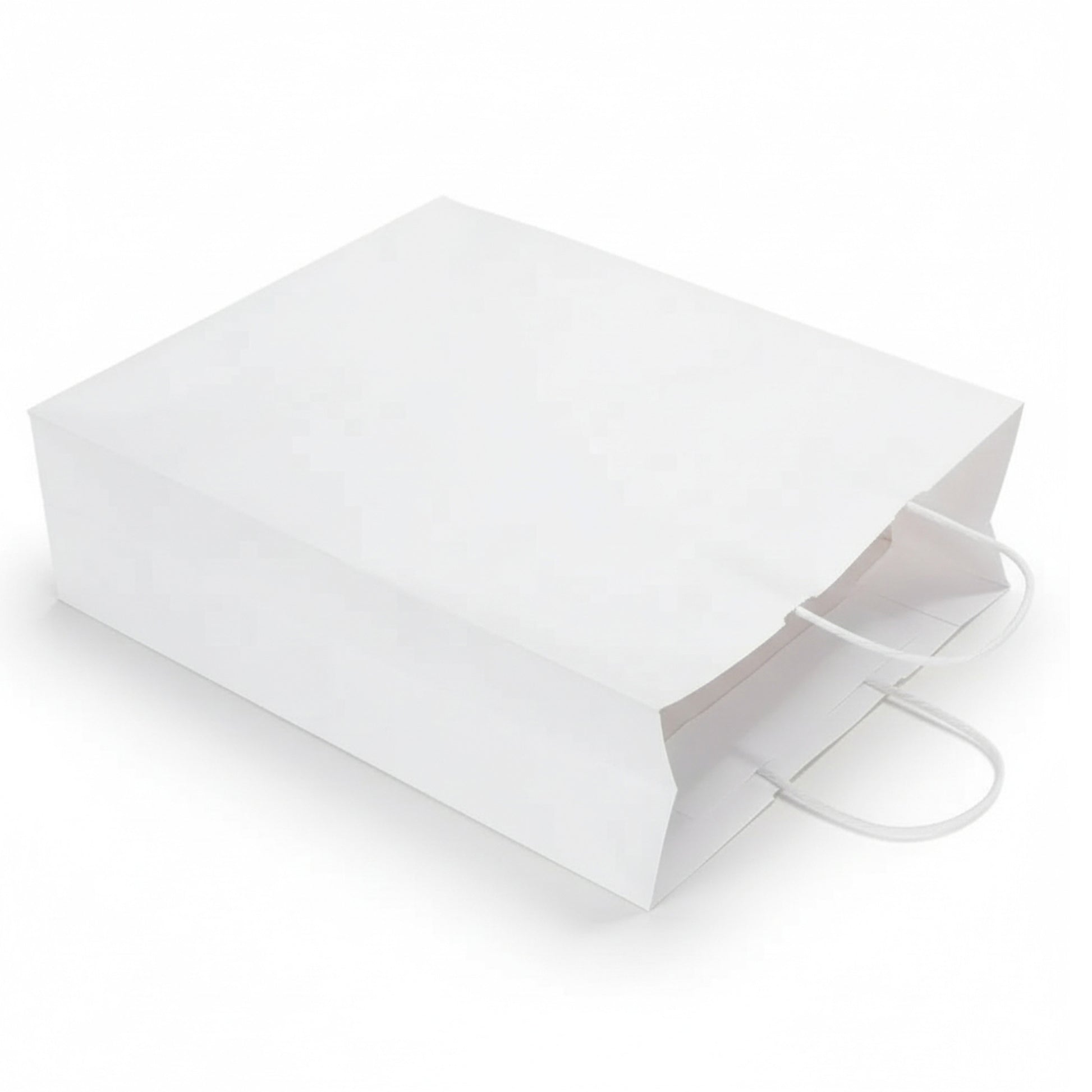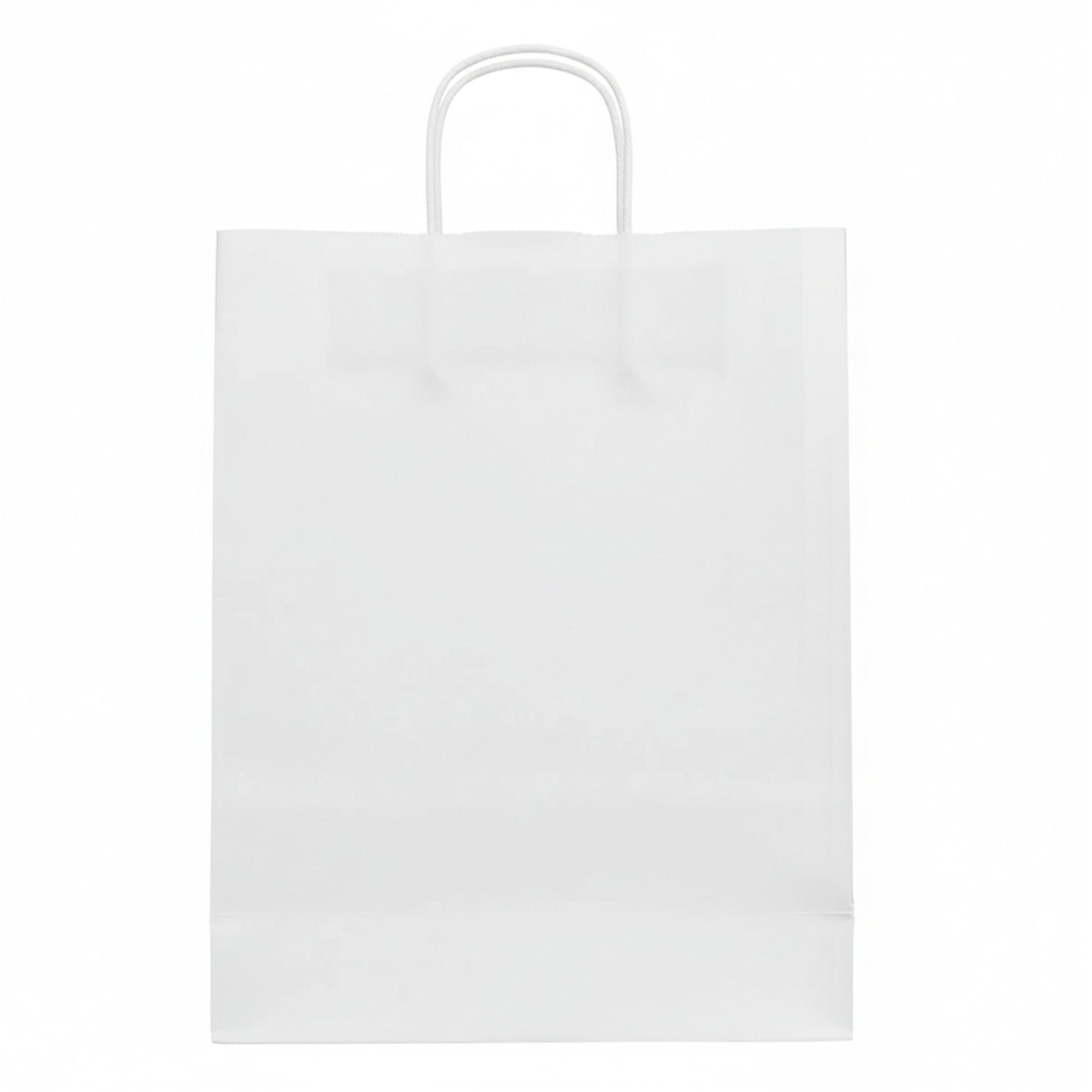 Burgu Saplı Beyaz Kraft Kağıt Çanta
