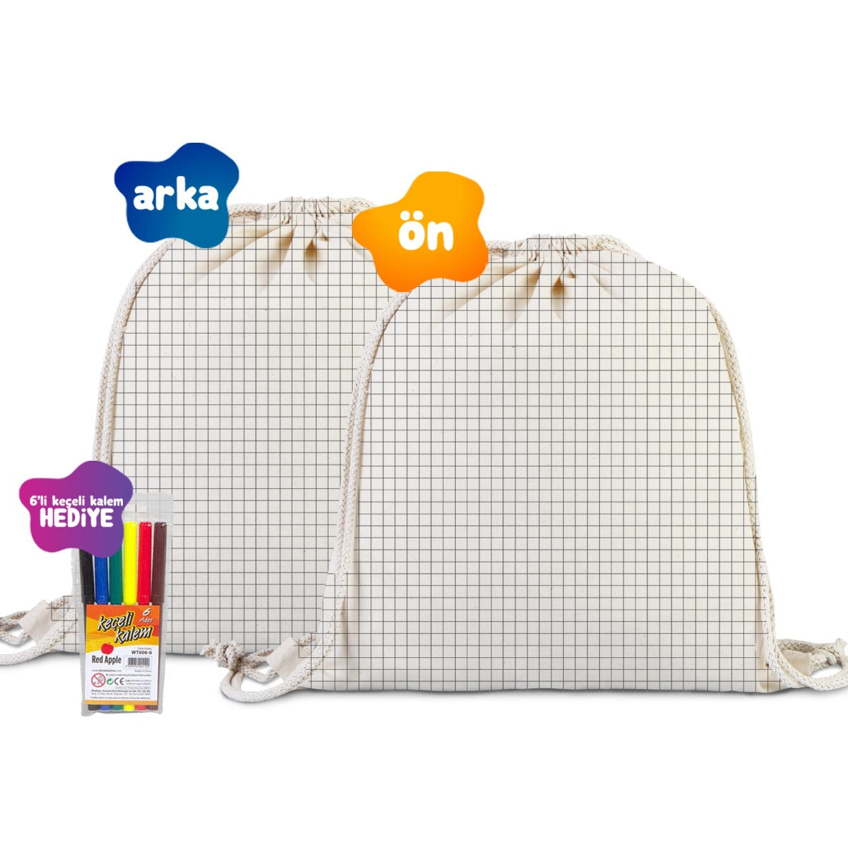 • Kare kodlama desenli boyamaya uygun Büzgülü Sırt Çantası Boyutları 35x40 cm (+/- 1 cm değişiklik gösterebilir)