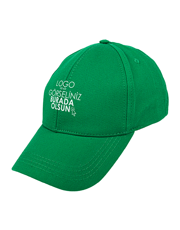 1. Kalite Gabardin Pamuklu Şapka - Yeşil (Özelleştirilebilir)