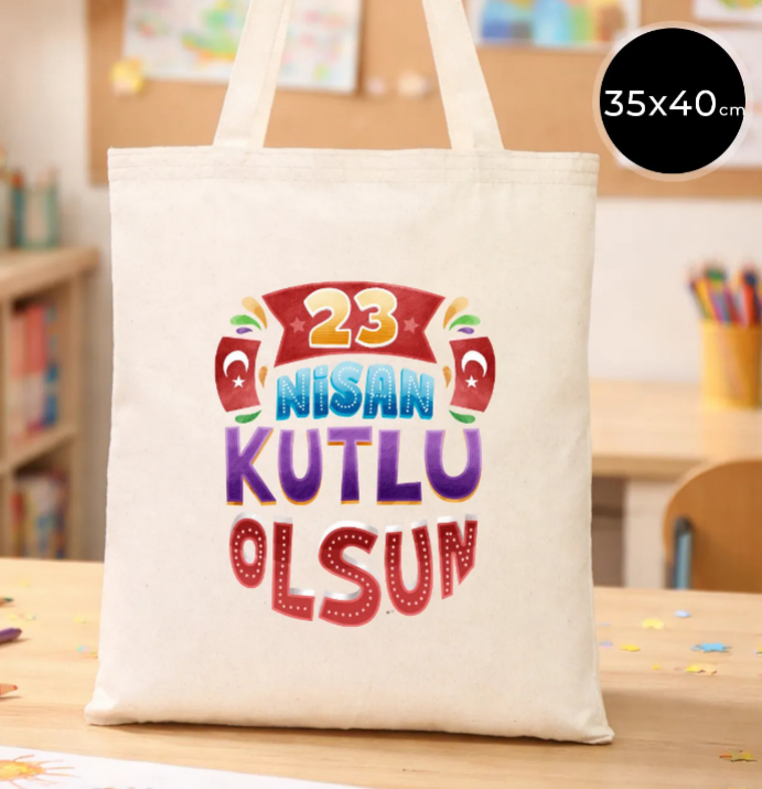35x40 cm Ham Bez Çanta - 23 Nisan Hediyesi