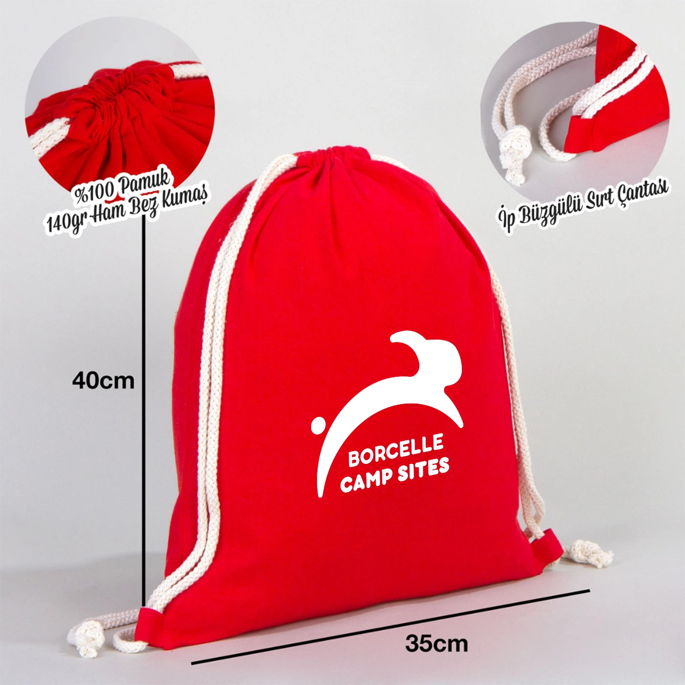 • Büzgülü Sırt Çantası Boyutları 35x40 cm (+/- 1 cm değişiklik gösterebilir)