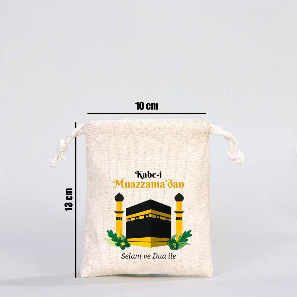 10x13 cm Kabe-i Muazzama’dan Selam ve Dua ile | Hac ve Umre Hediyelik Bez Kese