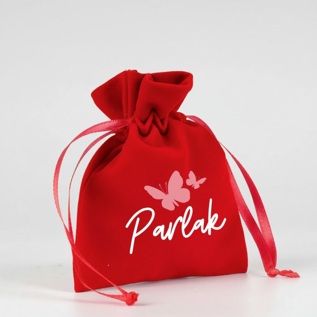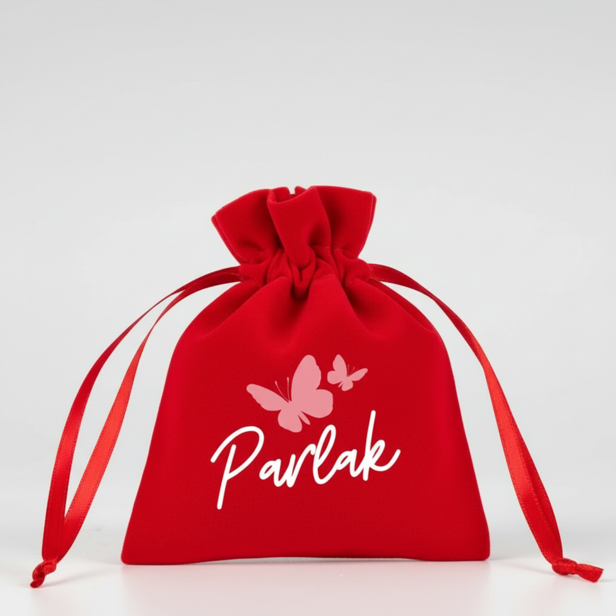 Kadife Gül Kese 10x13 cm - Kırmızı (Özelleştirilebilir)