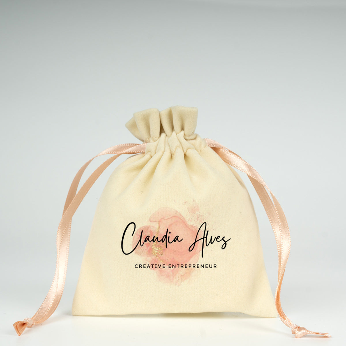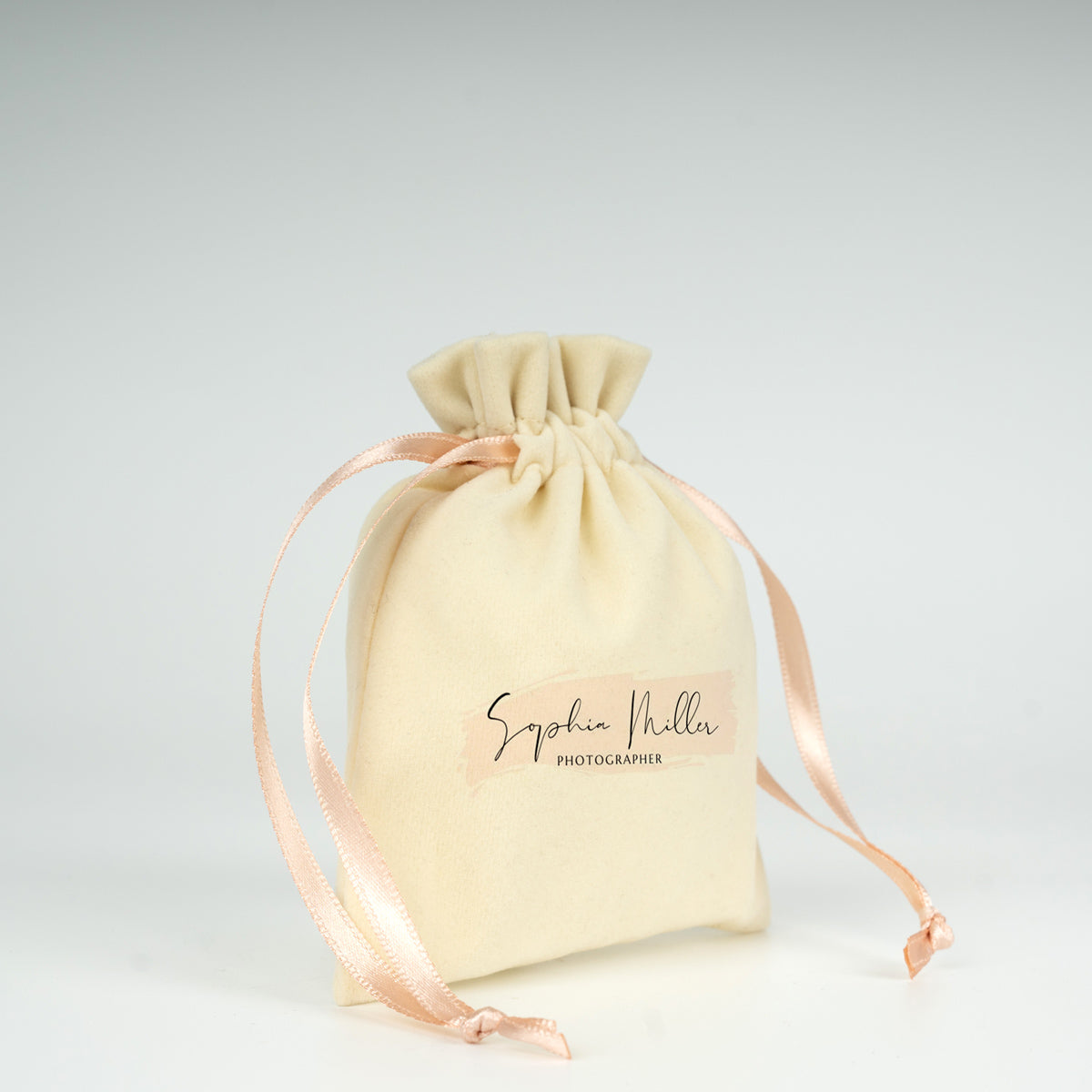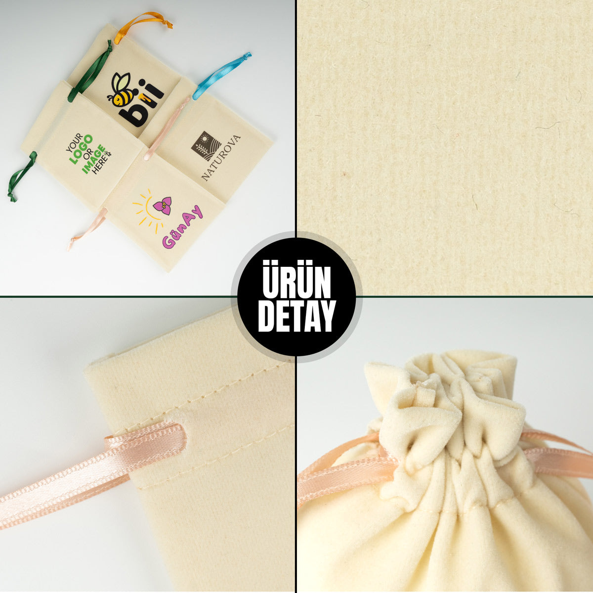 Kadife Gül Kese 10x14,5 cm - Pudra Renk İp (Özelleştirilebilir)