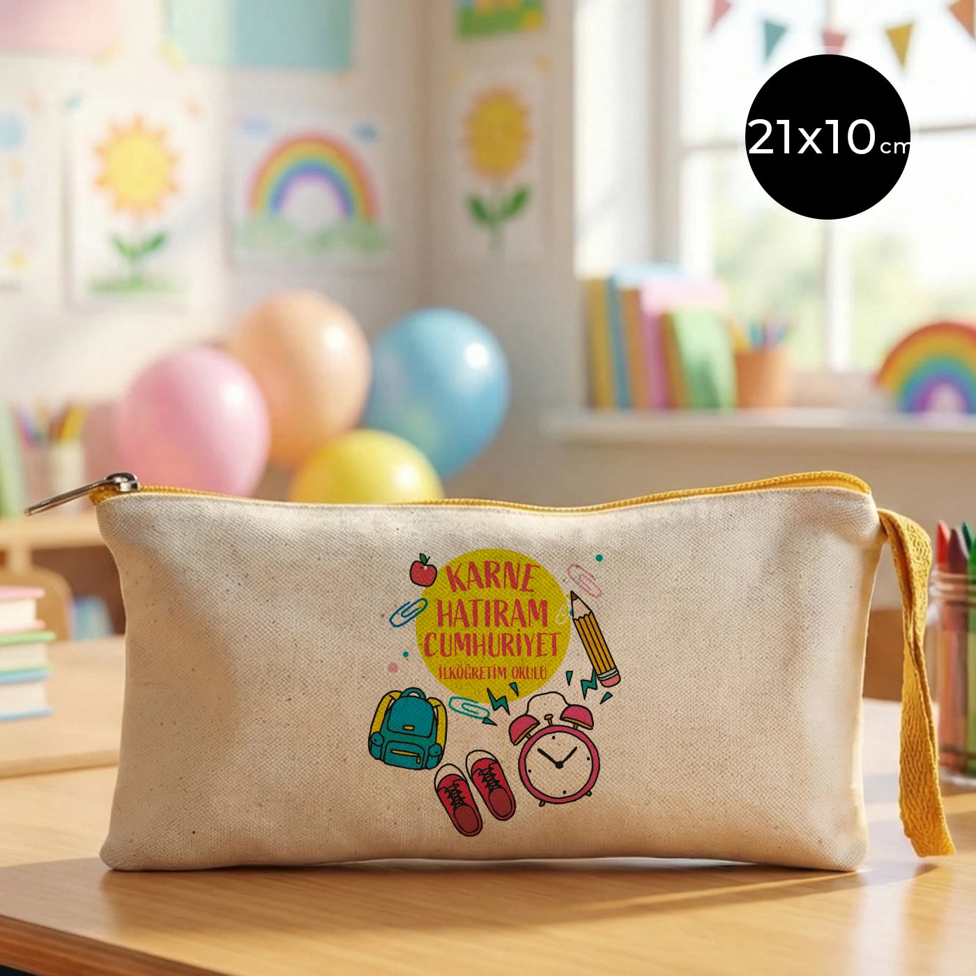 Karne Günü Baskılı Bez Kalemlik – Sarı Fermuarlı