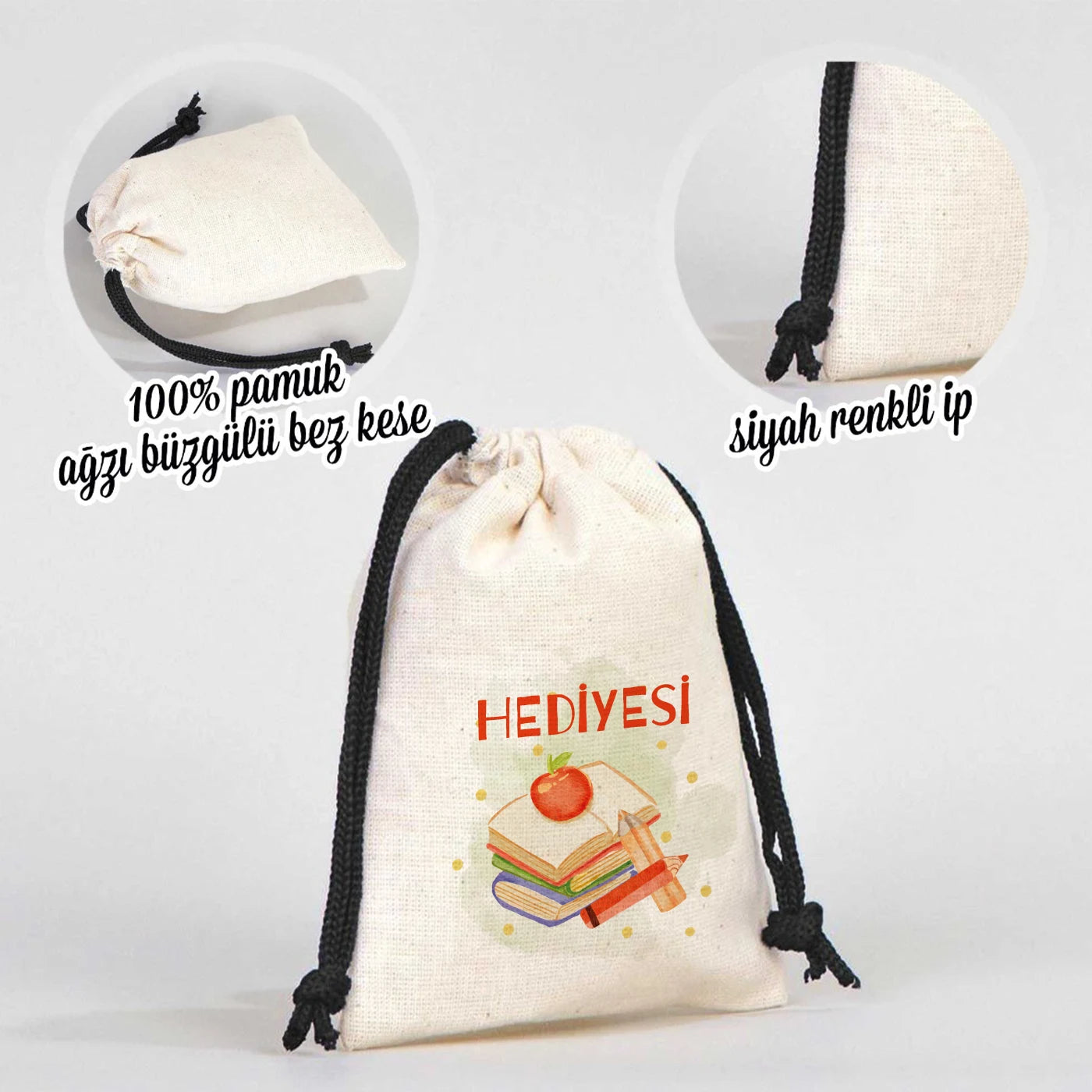 • 10×13 cm ölçülerinde, el işçiliğiyle üretilmiş ham bez kese