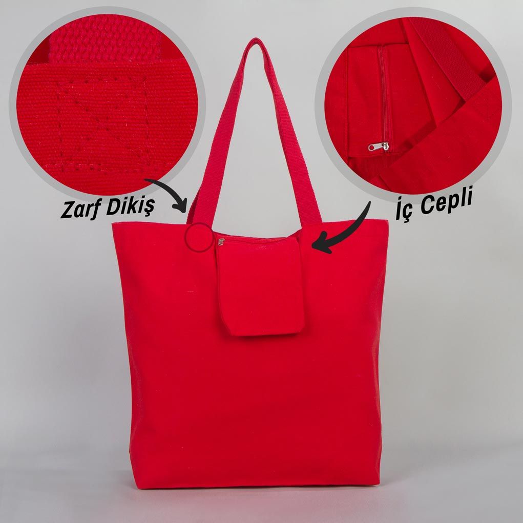 Kırmızı Kanvas Alışveriş Çantası
