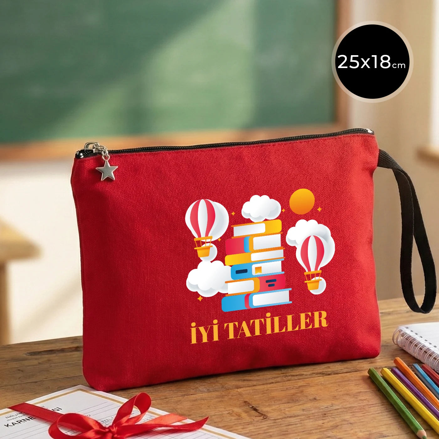 Karne Günü Hediyesi Kırmızı Clutch Kanvas Çanta 25×18 cm – Astarlı