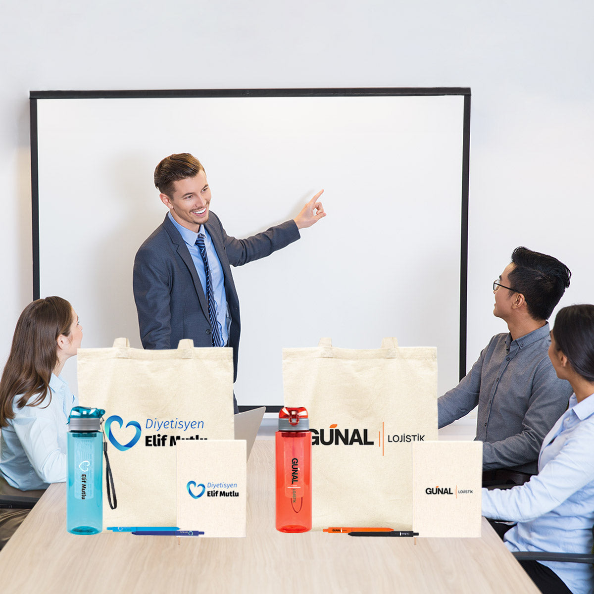 Kurumsal Firmalara Özel Hediye Seti - Bez Çanta / Defter / Kalem / Matara