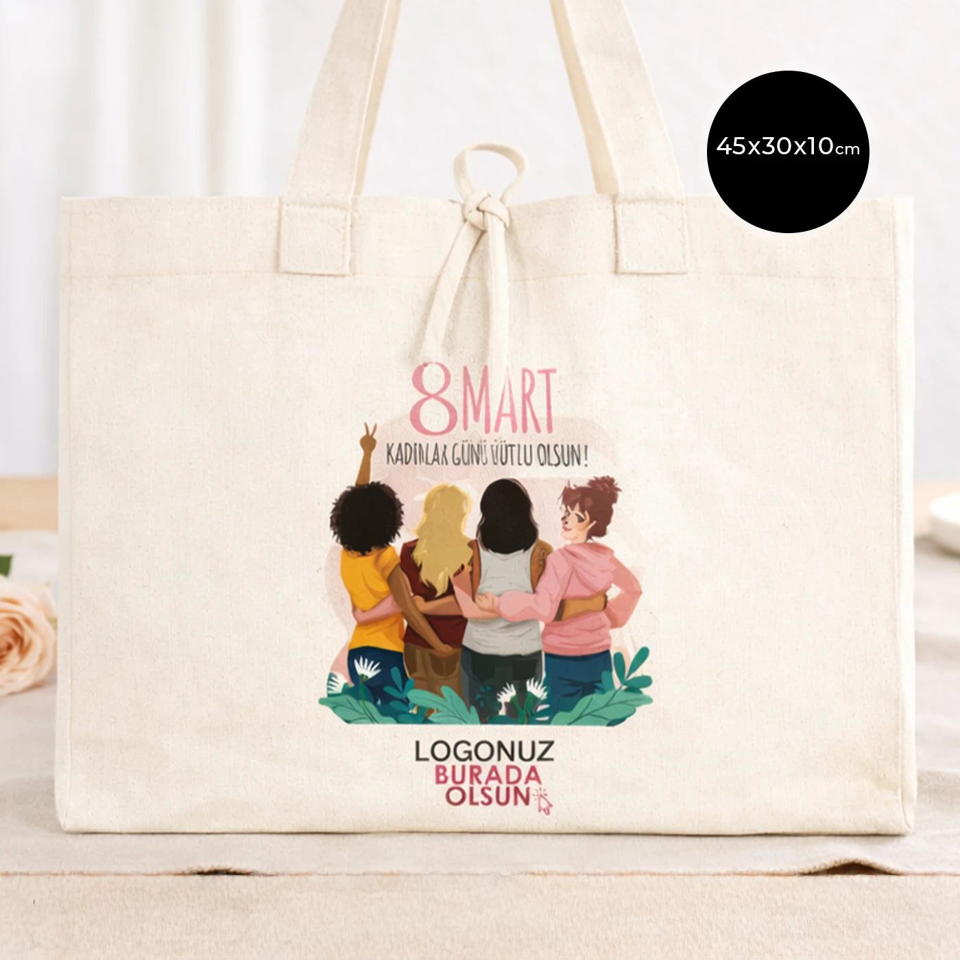 Large City Kanvas Çanta 45x30x10 cm - Kadınlar Günü Baskılı (Özelleştirilebilir)