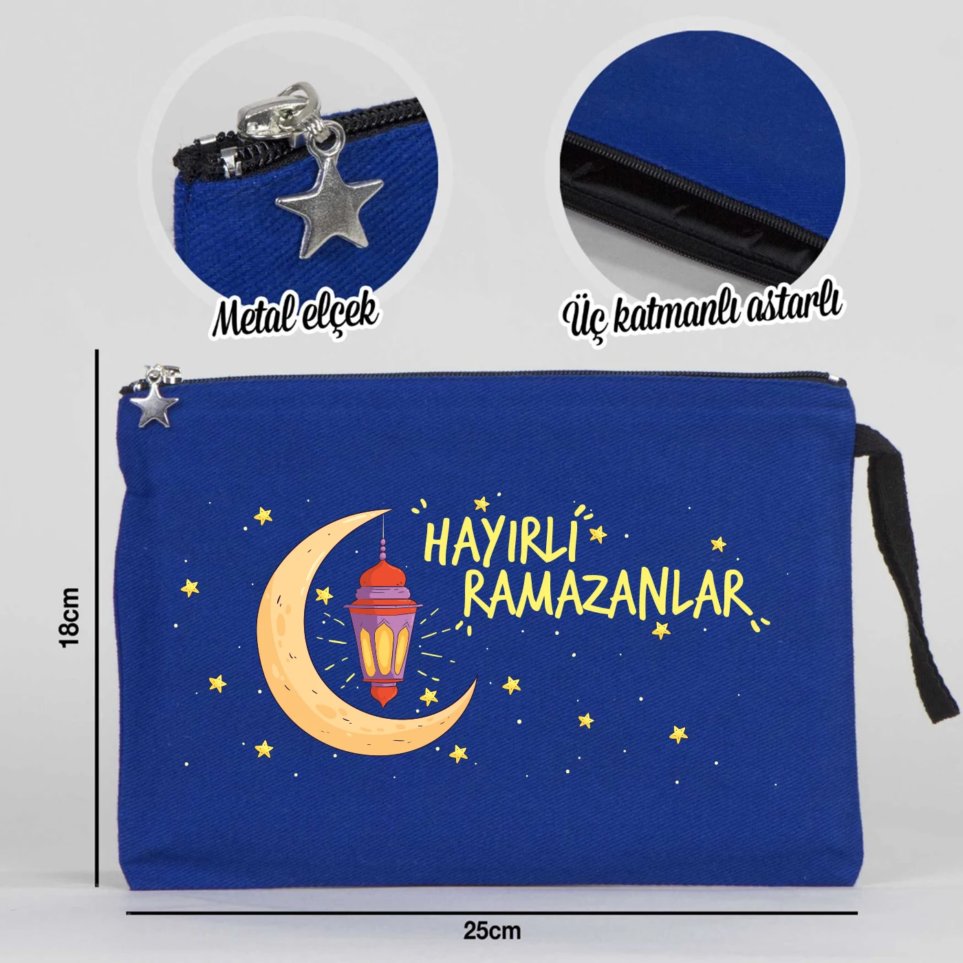 25x18 cm Mavi Astarlı Kanvas Kalemlik - Harçlık & Şeker Kesesi