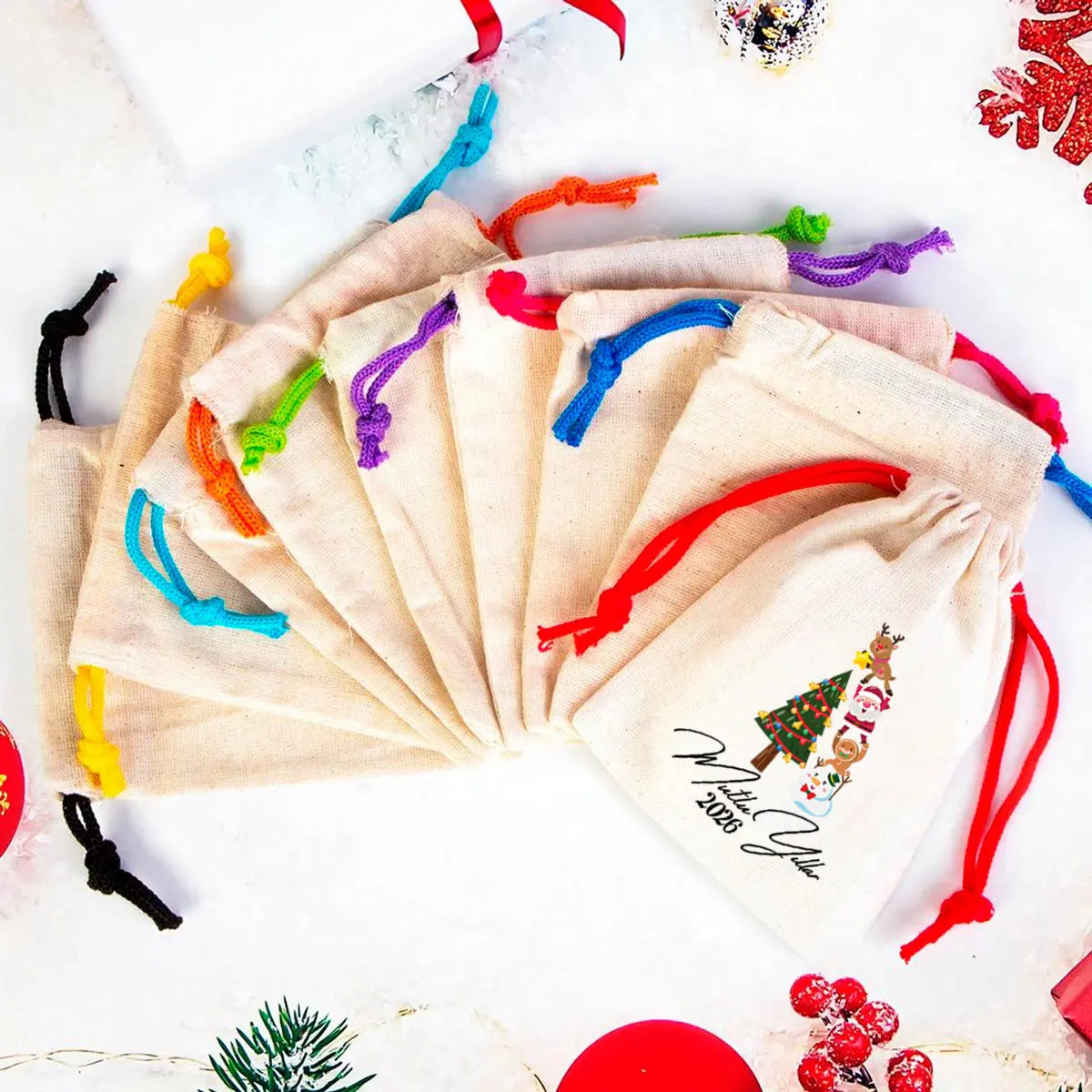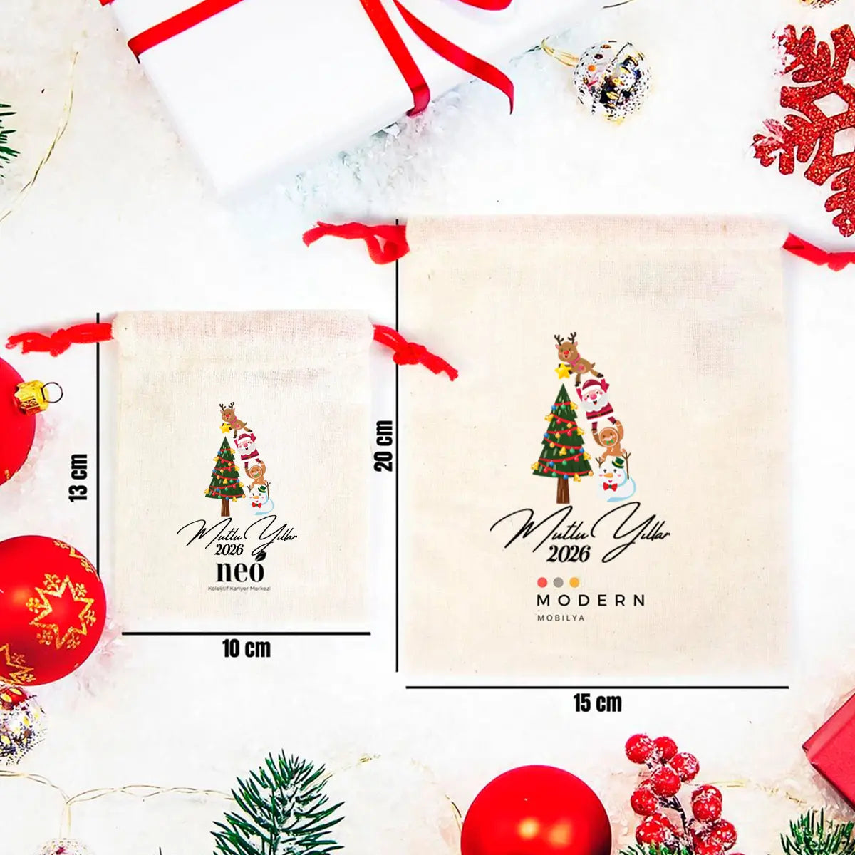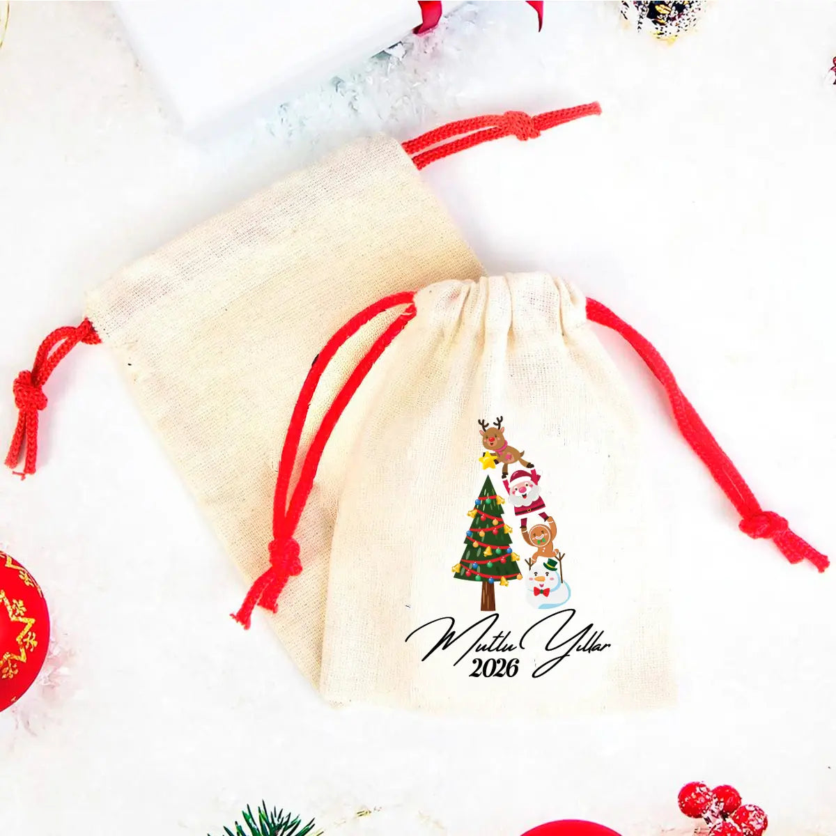 Mutlu Yıllar 2026 Baskılı Bez Kese - Renkli İp - (Özelleştirilebilir)