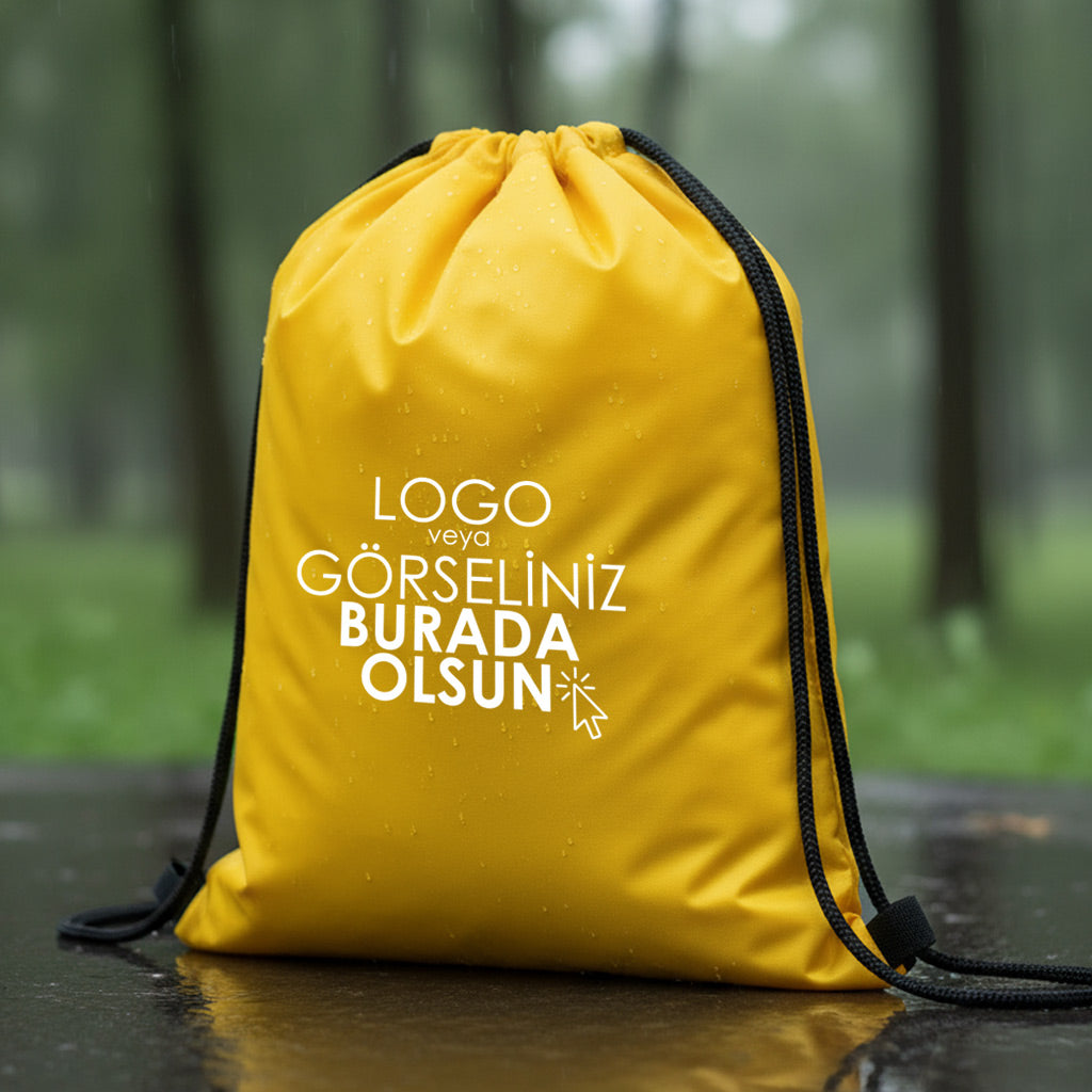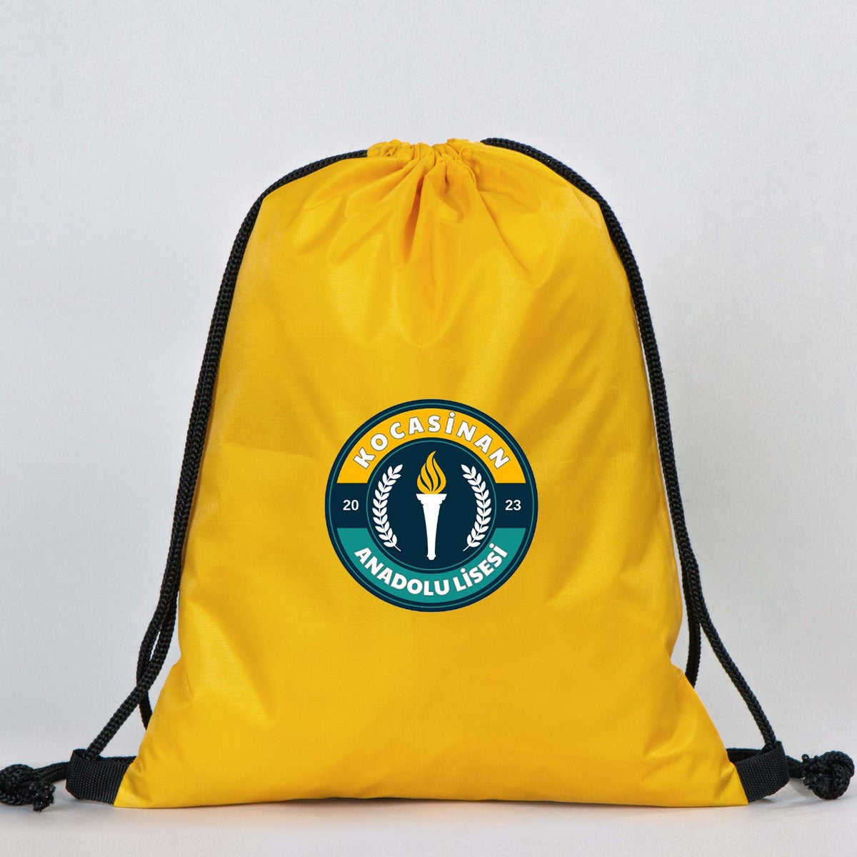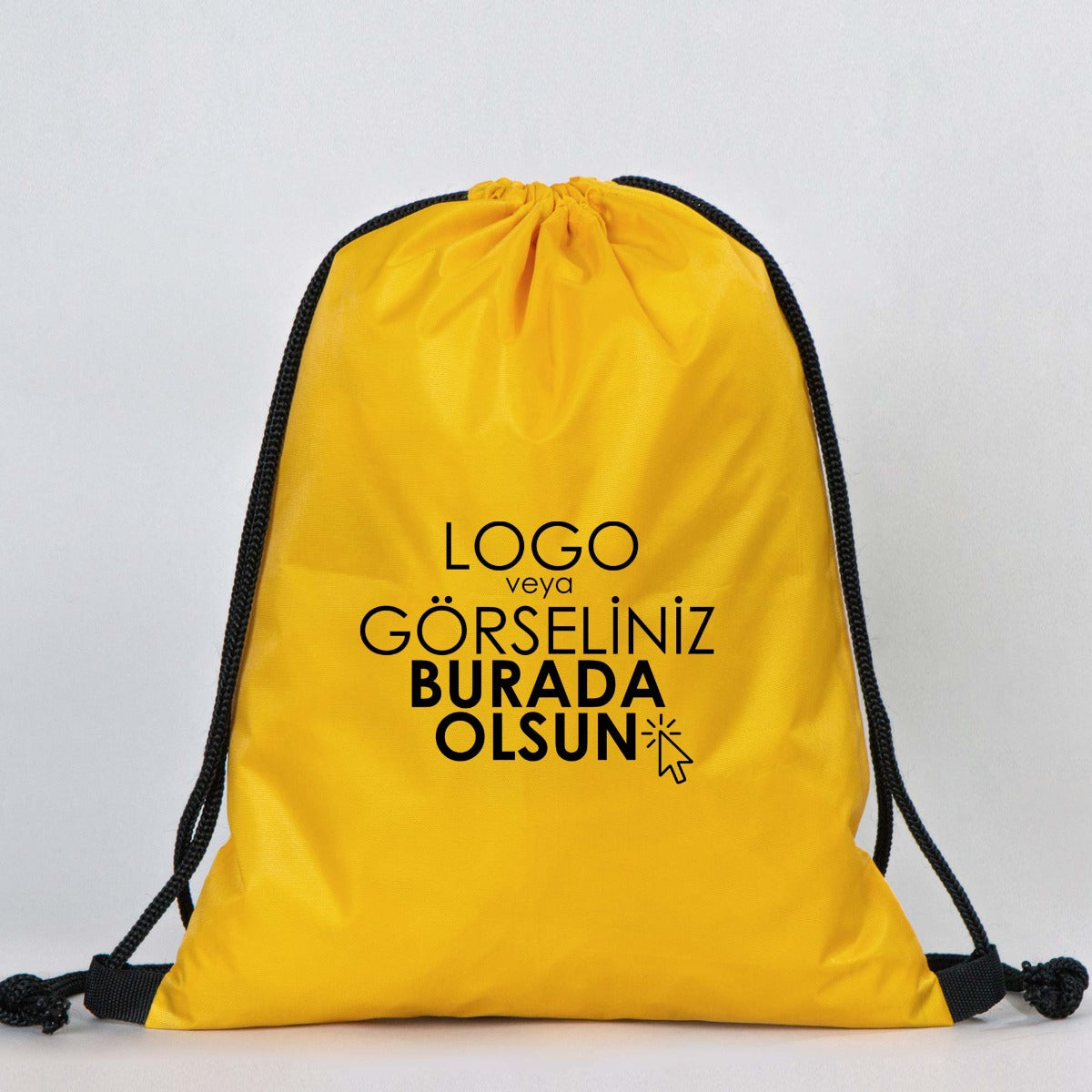 Sarı İmperteks Büzgülü Sırt Çantası - 32x45 cm (Özelleştirilebilir)
