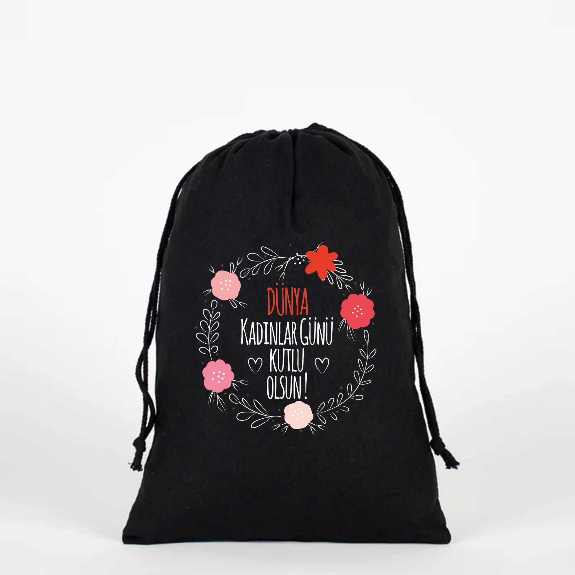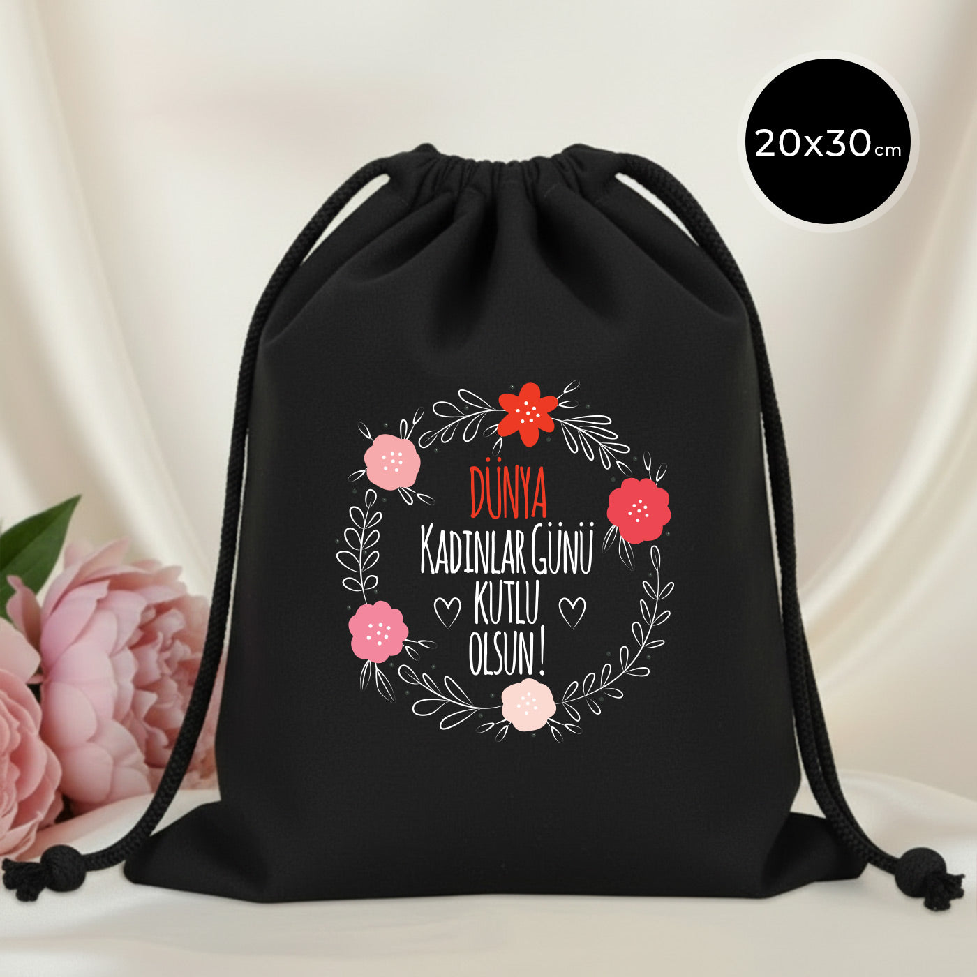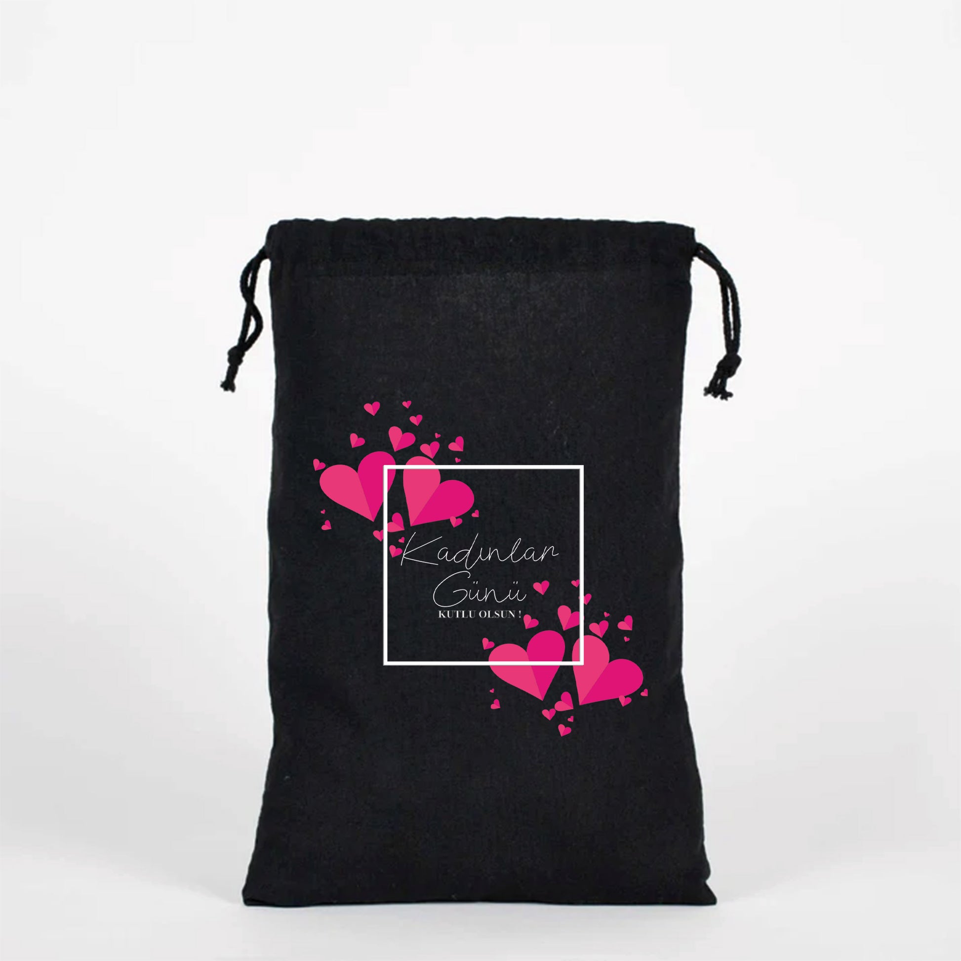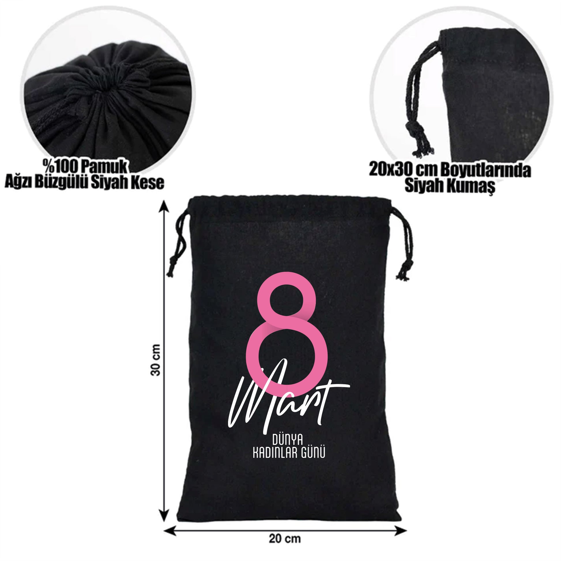 20x30 cm Siyah Bez Kese - Kadınlar Günü Hediyesi