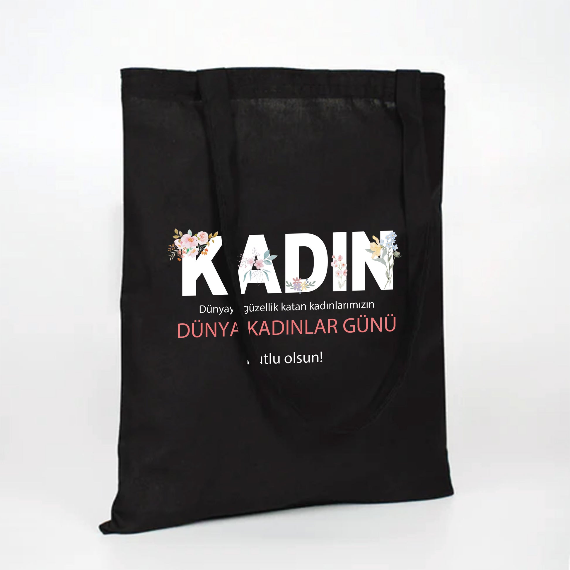 35x40 Siyah Ham Bez Çanta Baskılı – Kadınlar Günü