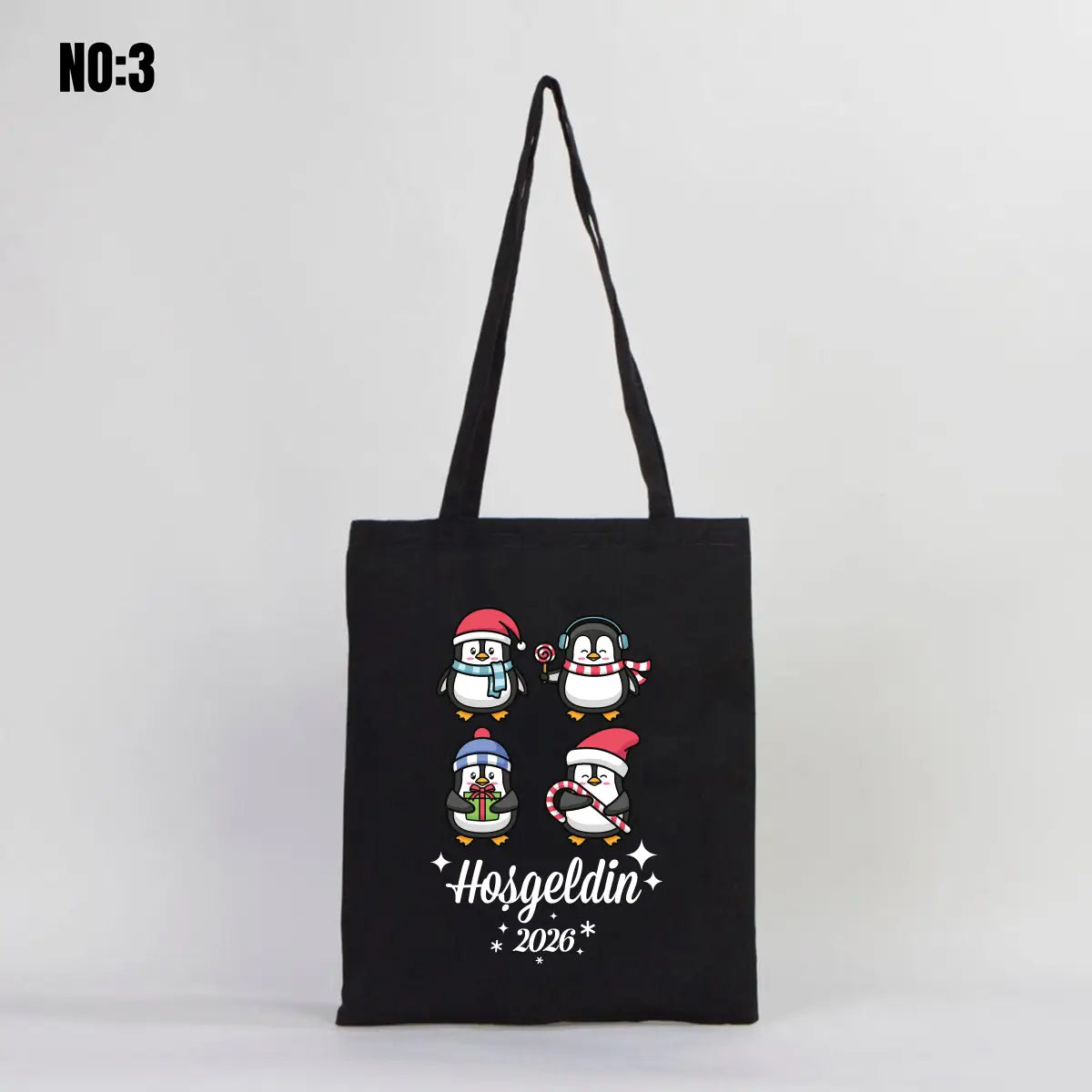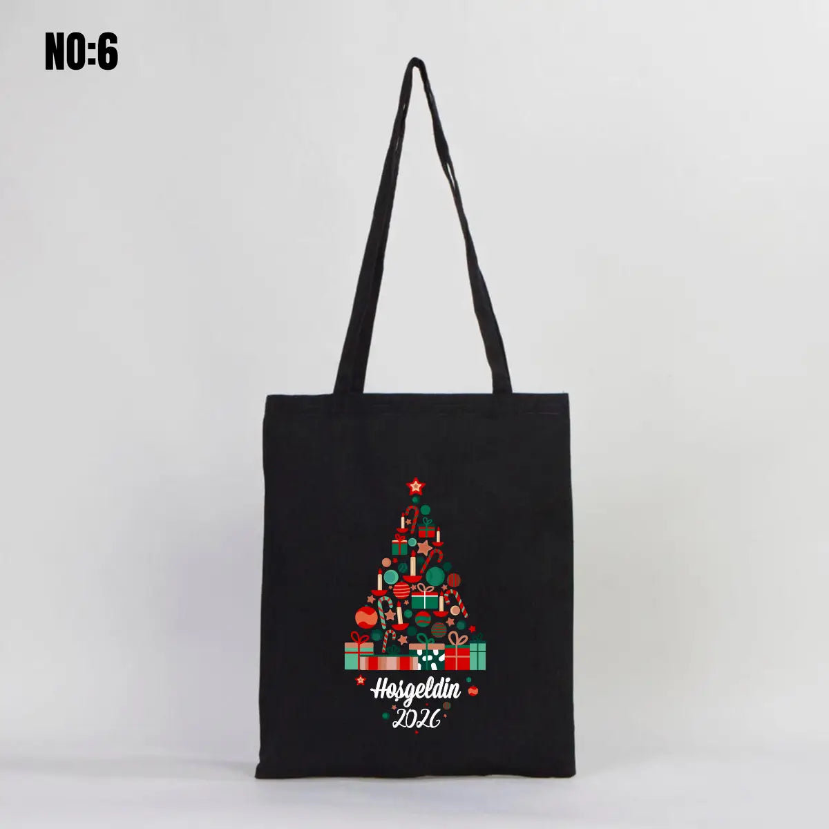 Siyah Ham Bez Çanta 35x40 cm Yılbaşı Baskılı (Özelleştirilebilir)
