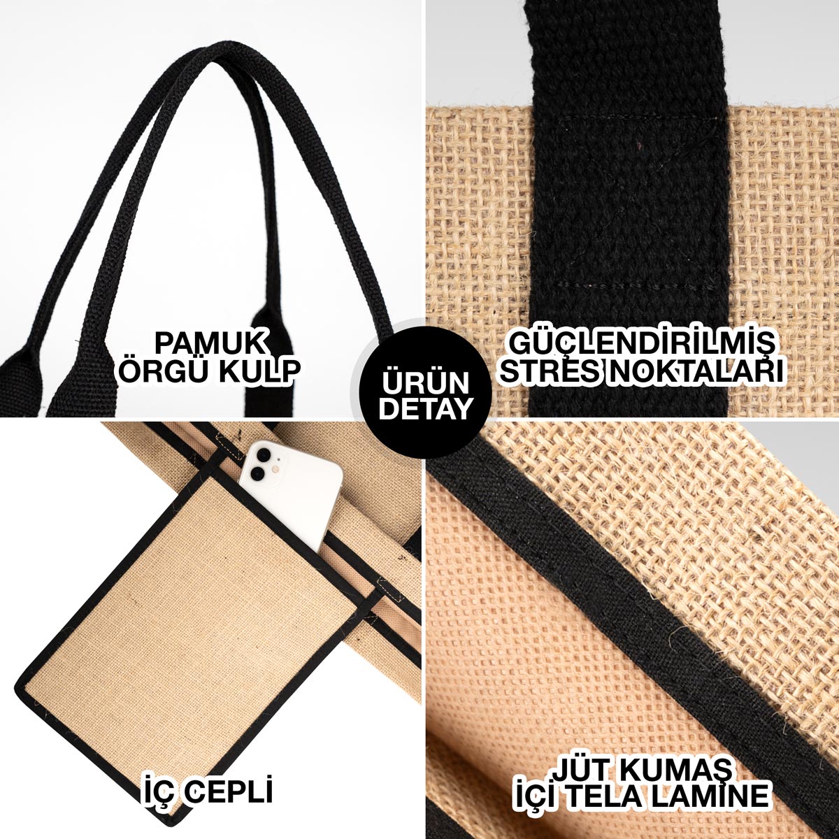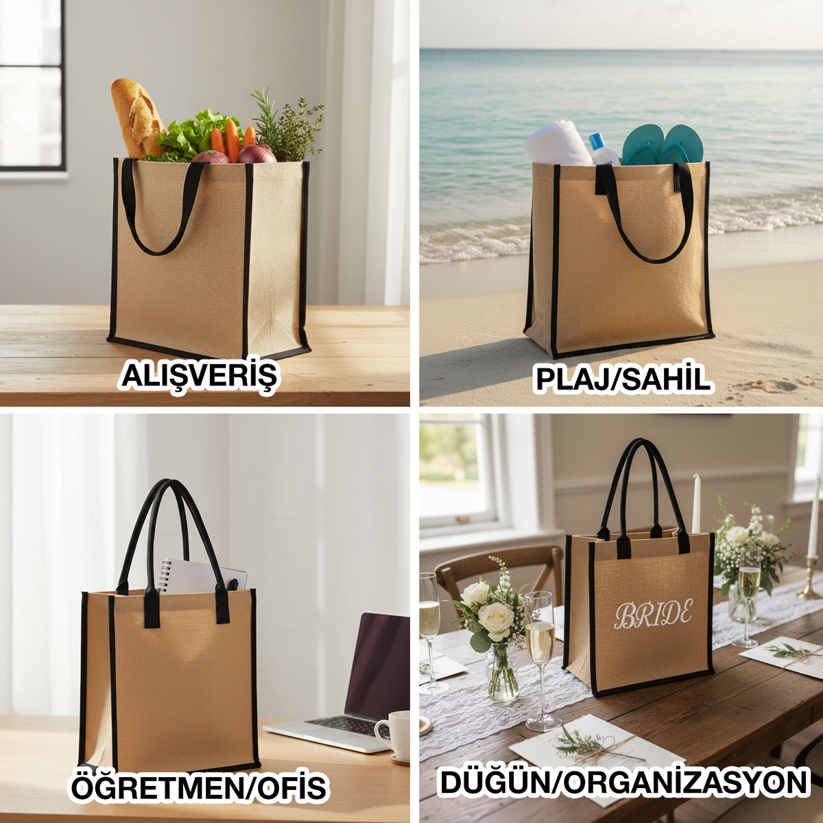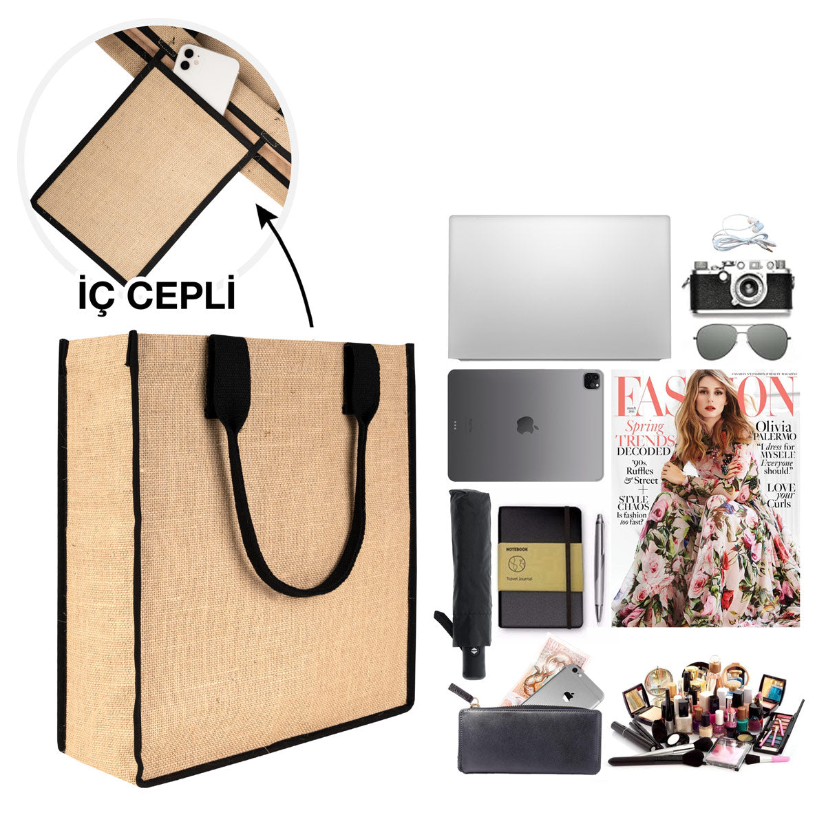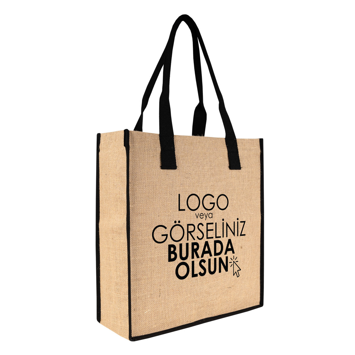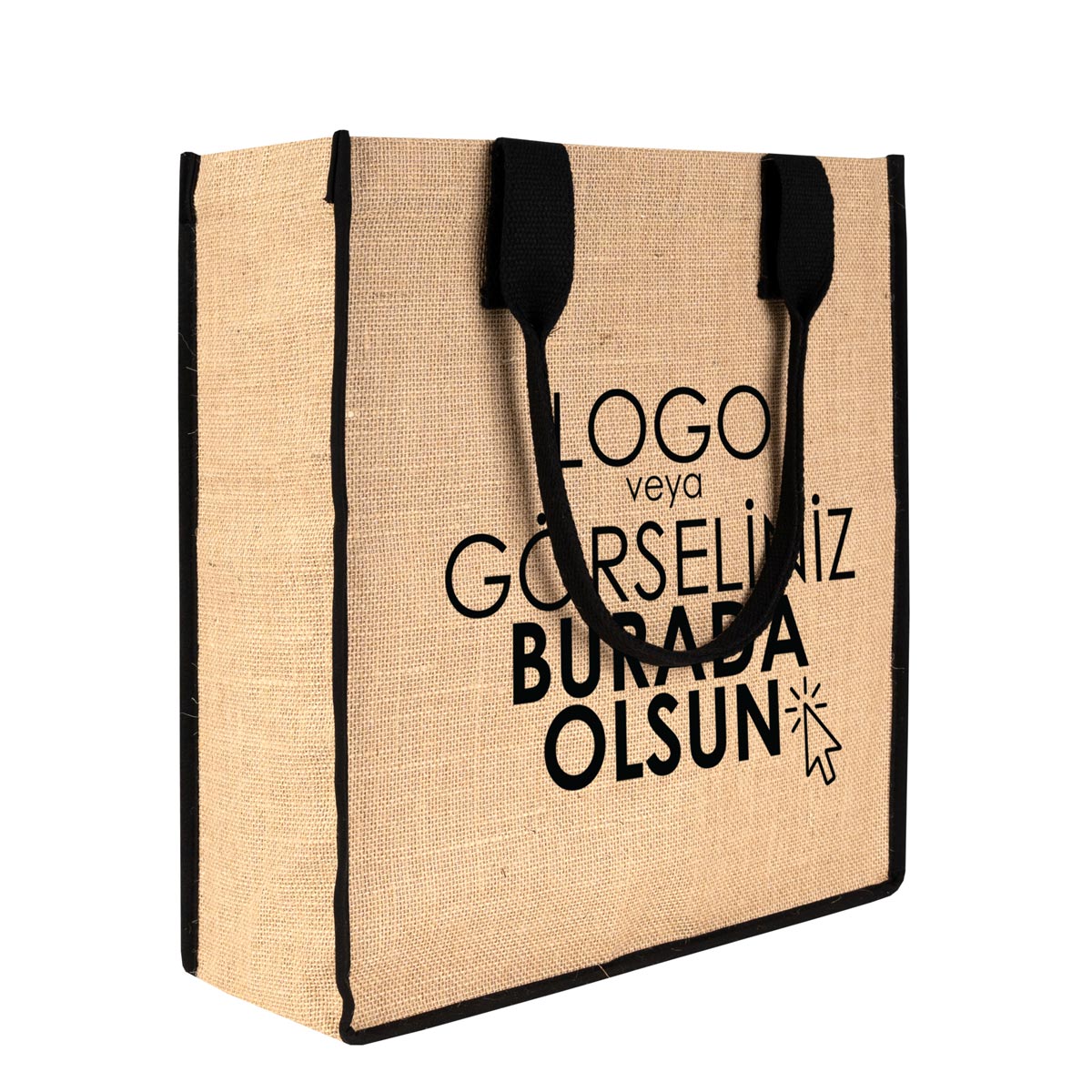 Tam Körüklü Large Jüt Çanta 35x40x12 cm (Özelleştirilebilir)