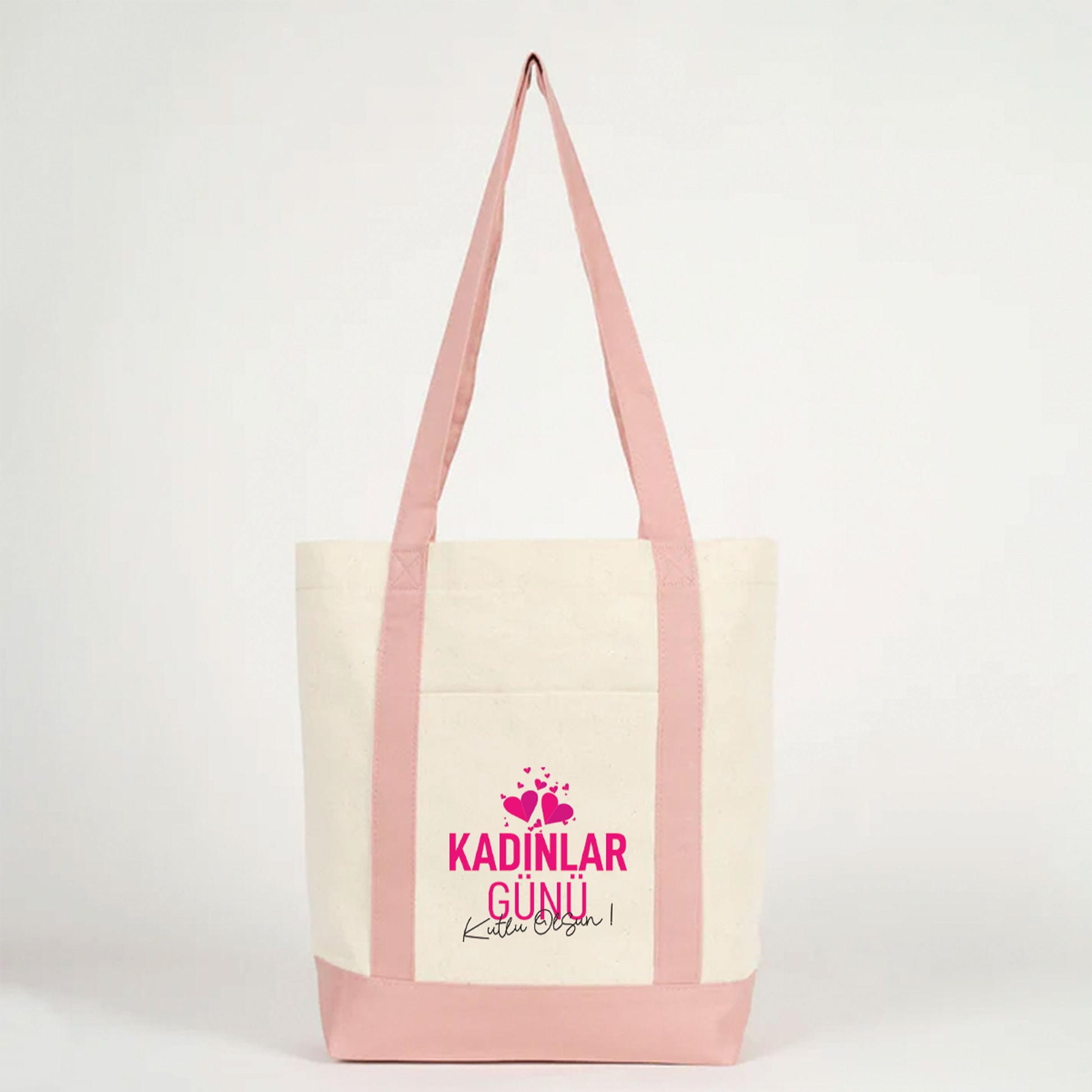 40x35x12 cm Trend Kanvas Çanta Pembe Kulp - Kadınlar Günü Hediyesi