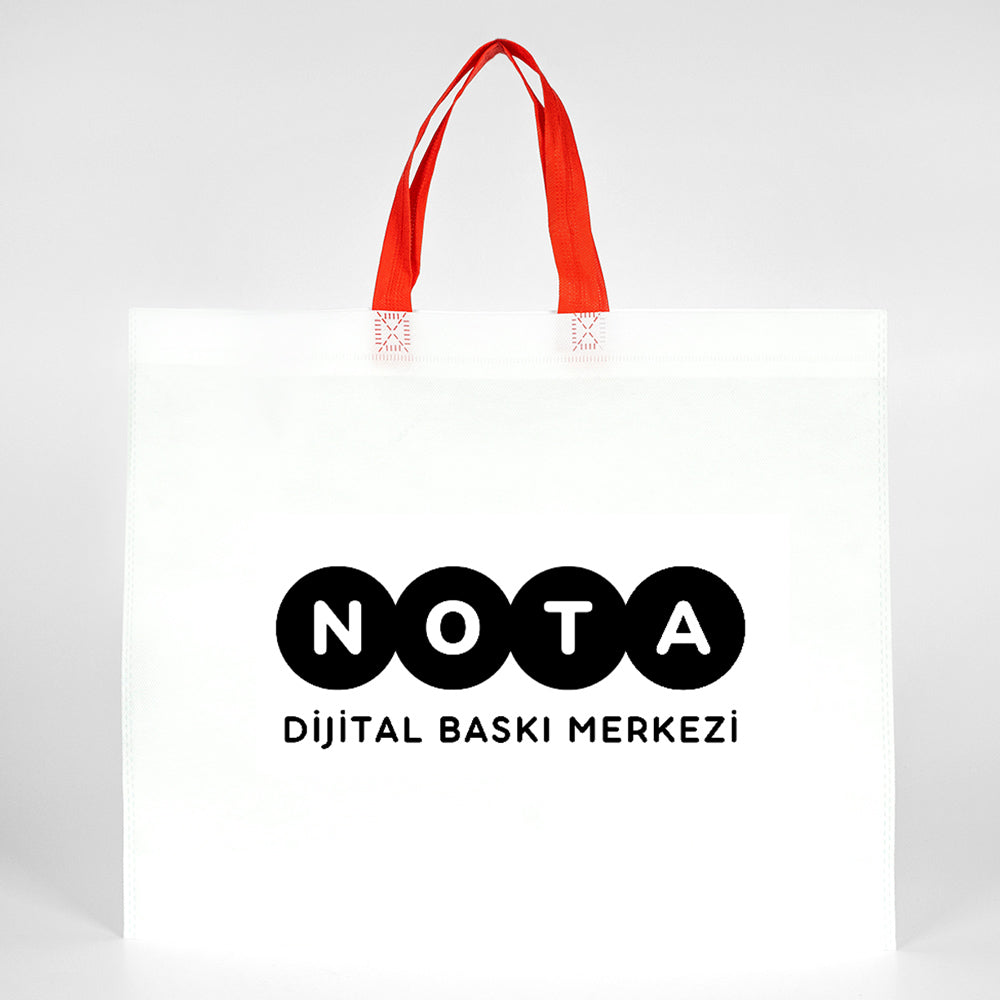 Ultrasonik Tela Çanta - Kırmızı Kulplu - 45x36x10cm - 1000 Adet Tek Renk Baskı (Özelleştirilebilir)